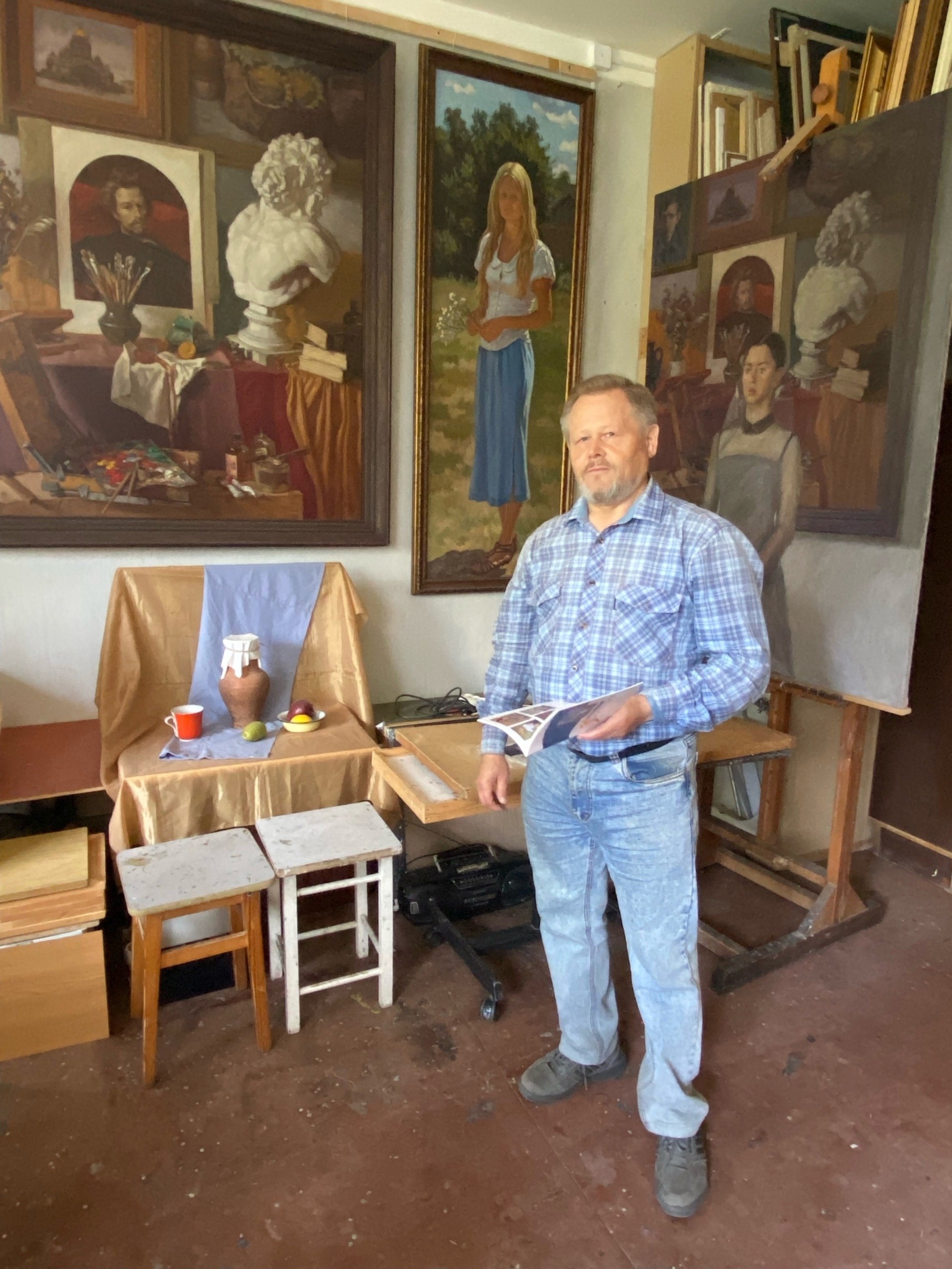 Но знакомство с творчеством Михаила Золотых на этом не закончилось. Художник любезно пригласил нас в свою мастерскую, где мы смогли увидеть множество других его произведений. Это было похоже на настоящую мини-выставку, позволившую глубже проникнуть в мир автора.
