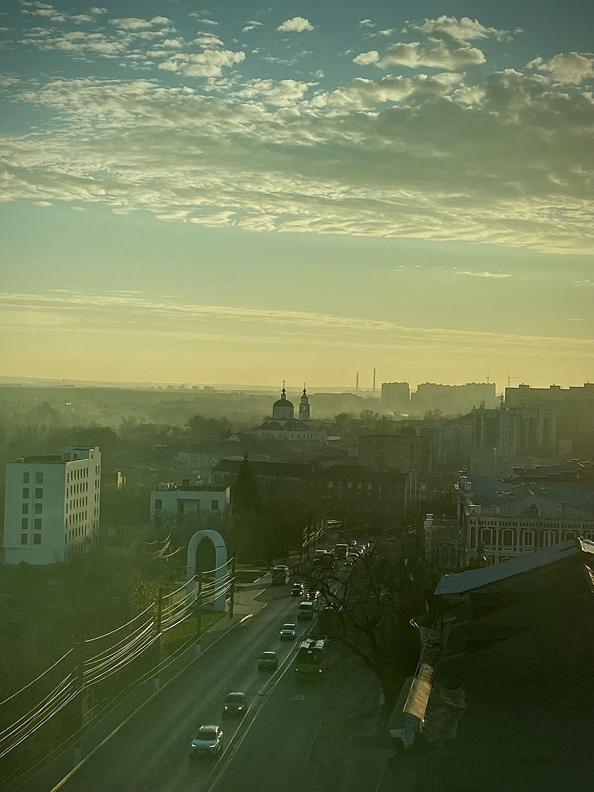 На горизонте возвышаются купола «Церкви Троицы (Нижняя)» - объекта культурного наследия федерального значения. Эта величественная церковь, несмотря на расстояние, приковывает взгляд, напоминая о богатой истории и духовном наследии нашего города.