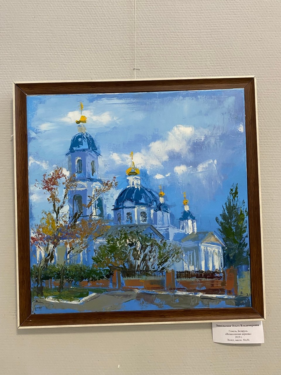 Картина художника Завольской Ольги Владимировны "Вознесенская церковь". Период создания - 2019 г. Работа была представлена на художественной выставке «Курск: симфония города в красках», в выставочном зале им. К. Малевича, которая проходила в начале осени.