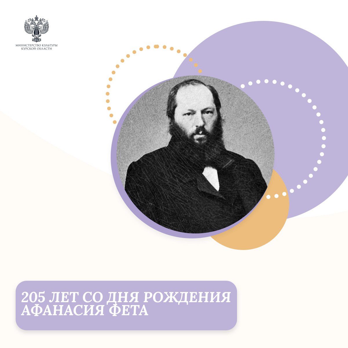 Сегодня исполняется 205 лет со дня рождения Афанасия Фета – русского поэта-лирика, переводчика, мемуариста, мирового судьи. Его творчество признано во всем мире и неразрывно связано с курской землей.