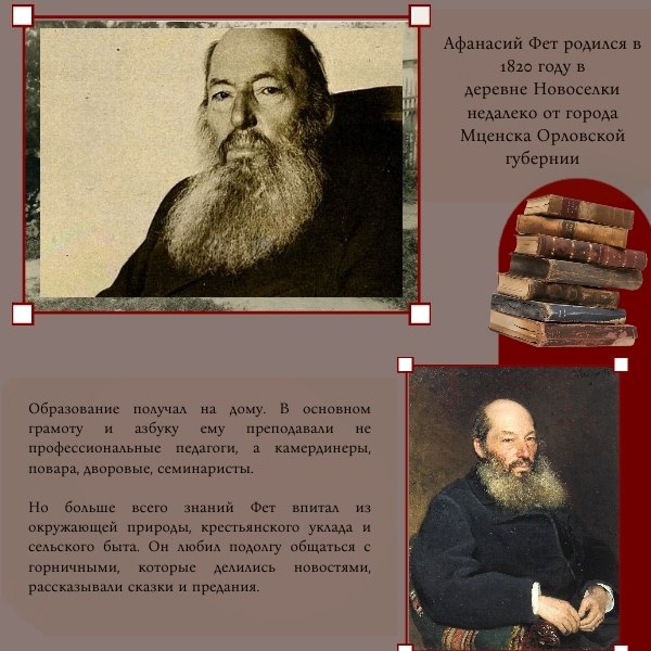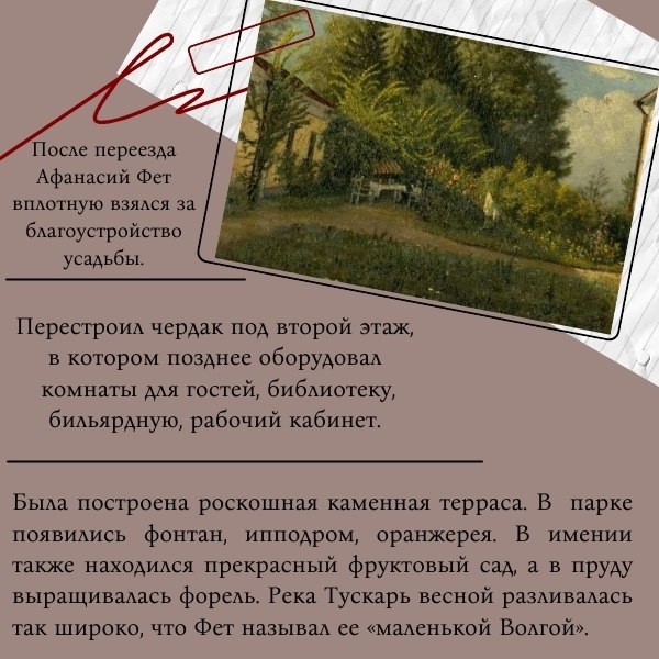 На карточках вы найдете основные моменты из жизни Афанасия Фета, а также узнаете небольшую историю самой усадьбы.