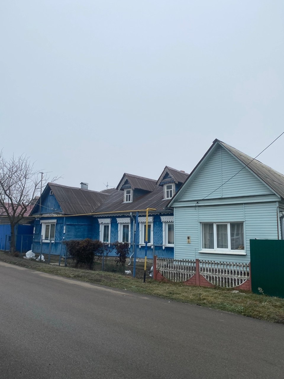 На фото изображен «Деревянный дом с ризалитами», 1910-е гг. - объект культурного наследия регионального значения. Он представляет собой прямоугольное здание с двумя угловыми ризалитами, обращенными к улице. Исторический вид сохранил левый ризалит, в то время как правый ризалит в результате ремонта утратил свой первоначальный облик.