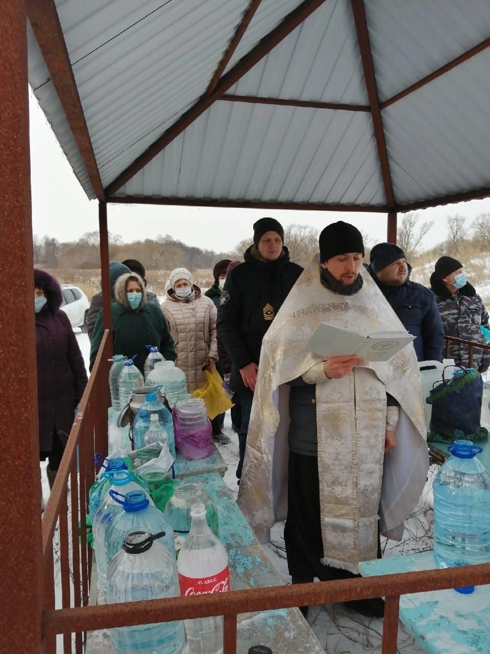 В этот же день в село приезжал священник из Михайловского храма села Гостомля и проводил водосвятие. Каждый житель села Высокое приносил с собой воду в банке или бидоне. Ранее воду набирали в ночь с 18 на 19 января в колодце у дома.