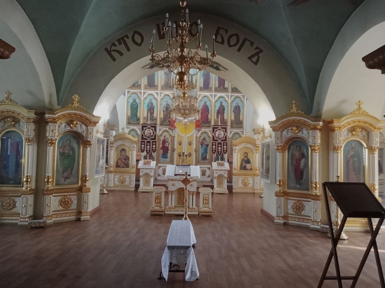 На фото представлен наос объекта культурного наследия федерального значения «Церковь Михайловская», 1762 - 1767 гг. До 1888 г. церковь называлась Вознесенской или Вознесенско-Михайловской. Здание Михайловской церкви было построено иждивением приходских людей Казацкой слободы однодворцев в 1767 г. (заложено в 1762 г.).
