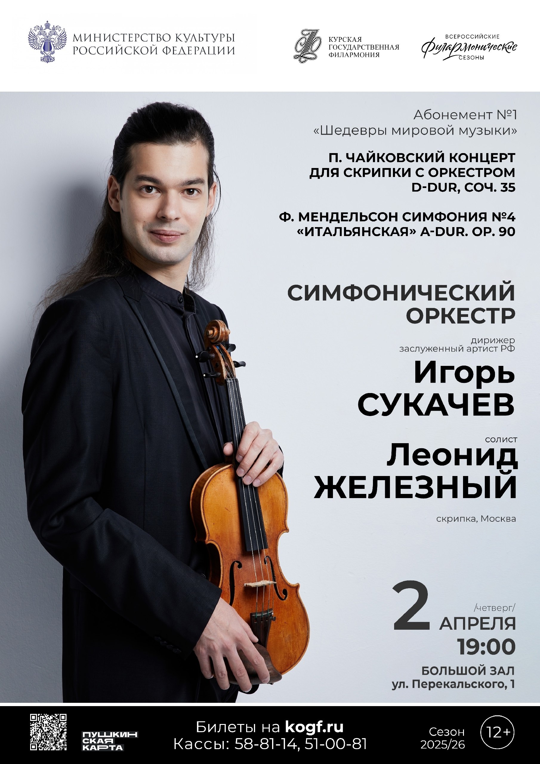 В этот вечер в сопровождении Курского симфонического оркестра выступит скрипач Леонид Железный. Дирижер – заслуженный артист РФ Игорь Сукачев.