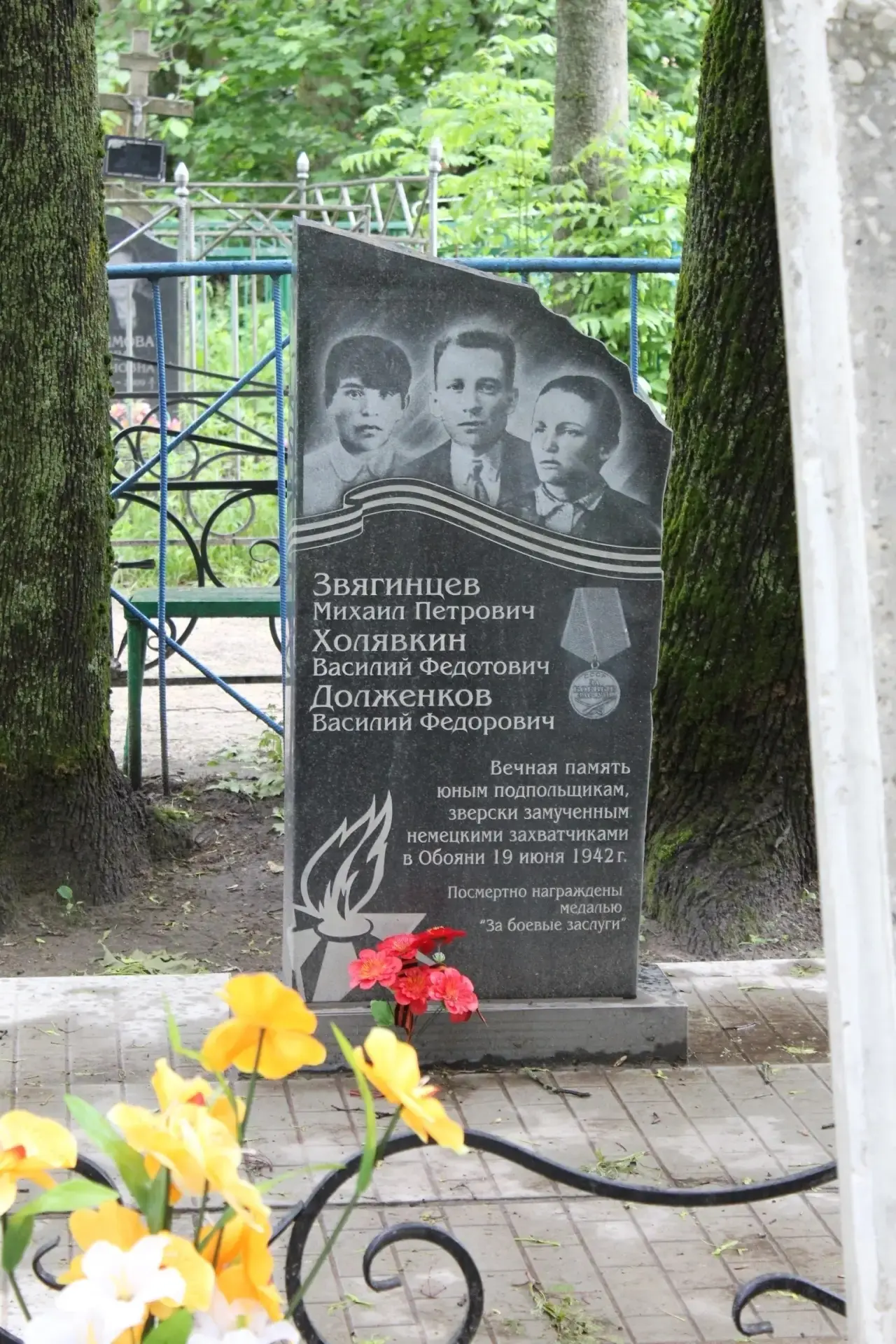 Объект нашего внимания — братская могила юных партизан В. Холявкина, В. Долженкова и М. Звягинцева в городе Обоянь (Курская область).