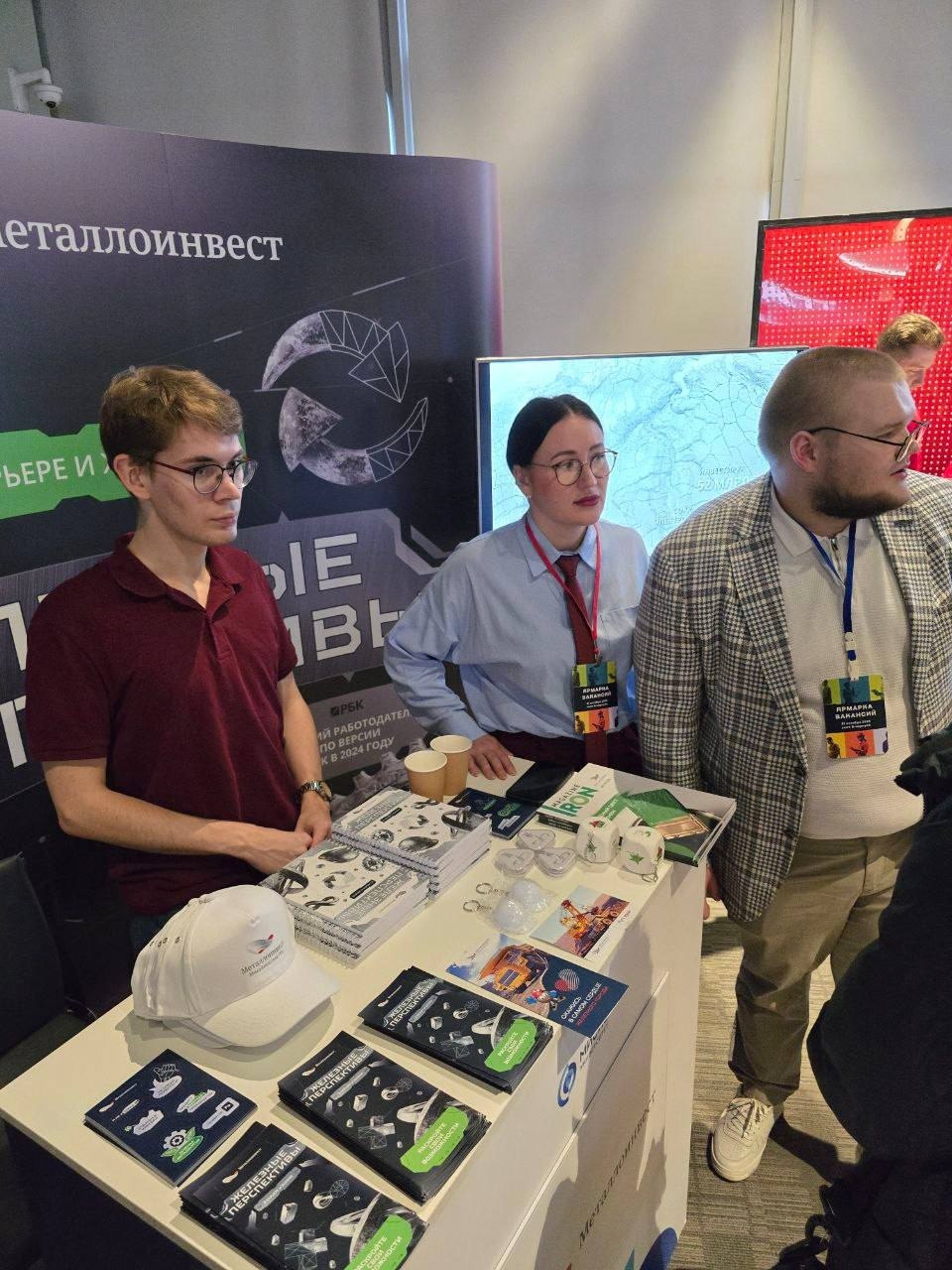 Михайловский ГОК им. А.В. Варичева принял участие на ярмарке вакансий МИСИС. Ключевое карьерное событие университета объединило более 4000 участников и ведущих работодателей страны. На стенде Михайловского ГОКа студенты узнали о вакансиях и стажировках, смогли пройти экспресс-собеседование и заполнить анкеты. Предложения комбината заинтересовали многих ребят, получающих образование по направлениям горного дела.