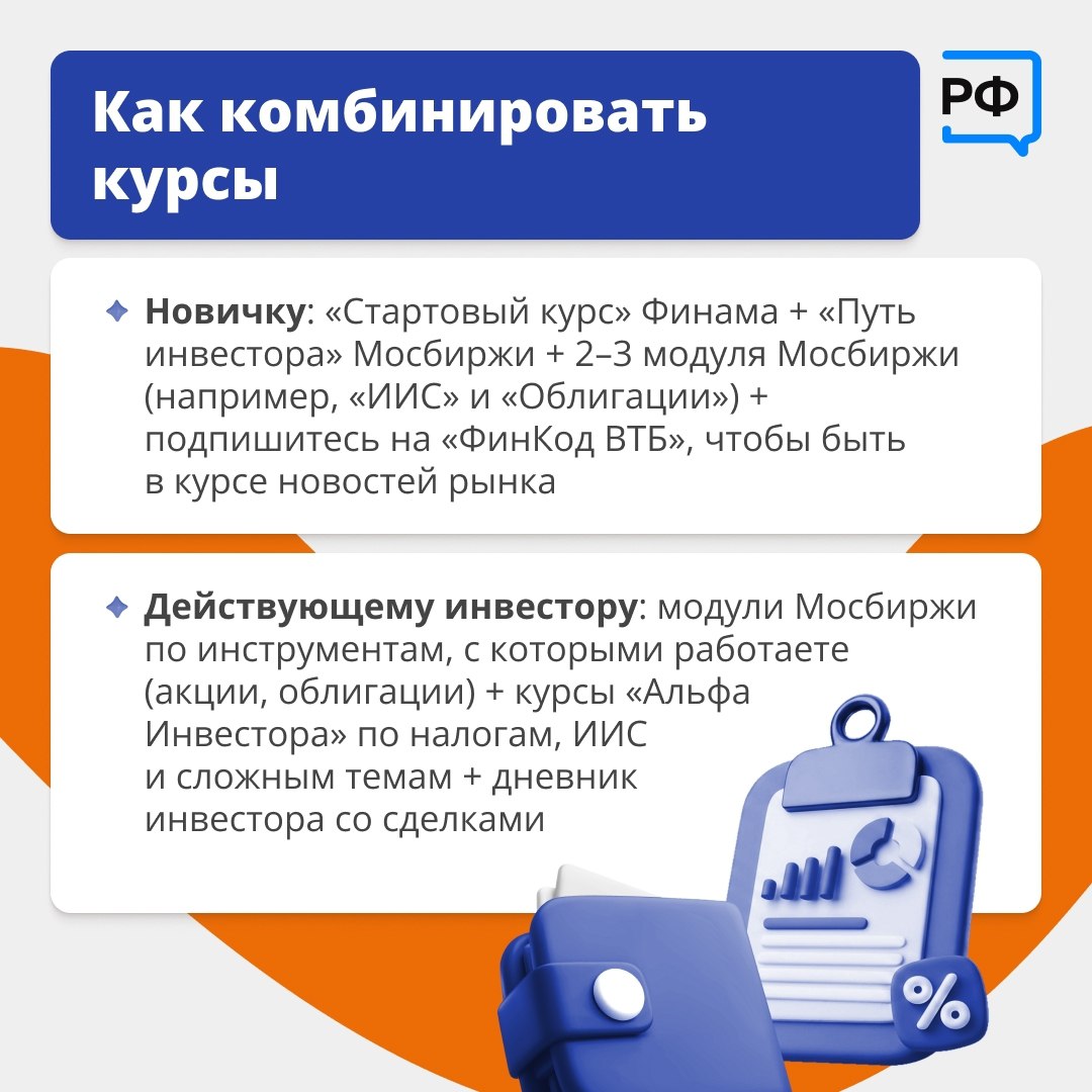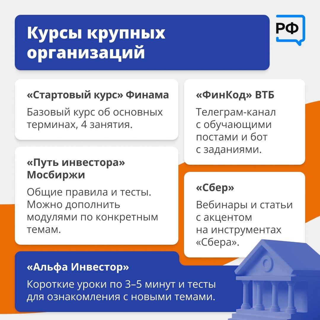 Разобраться в сложных терминах и собрать первый портфель помогут специальные бесплатные курсы. Как выбрать подходящие — читайте в карточках.