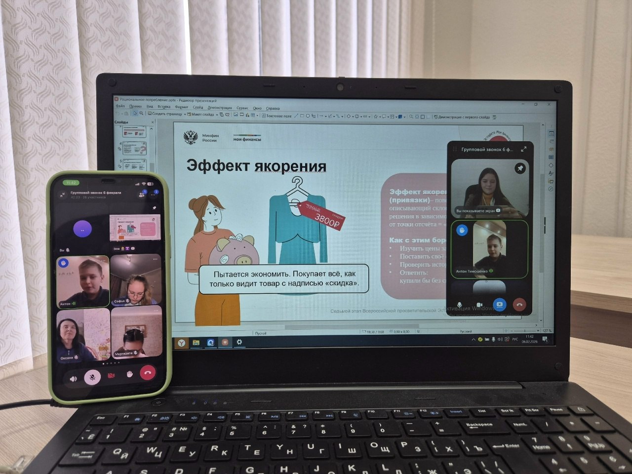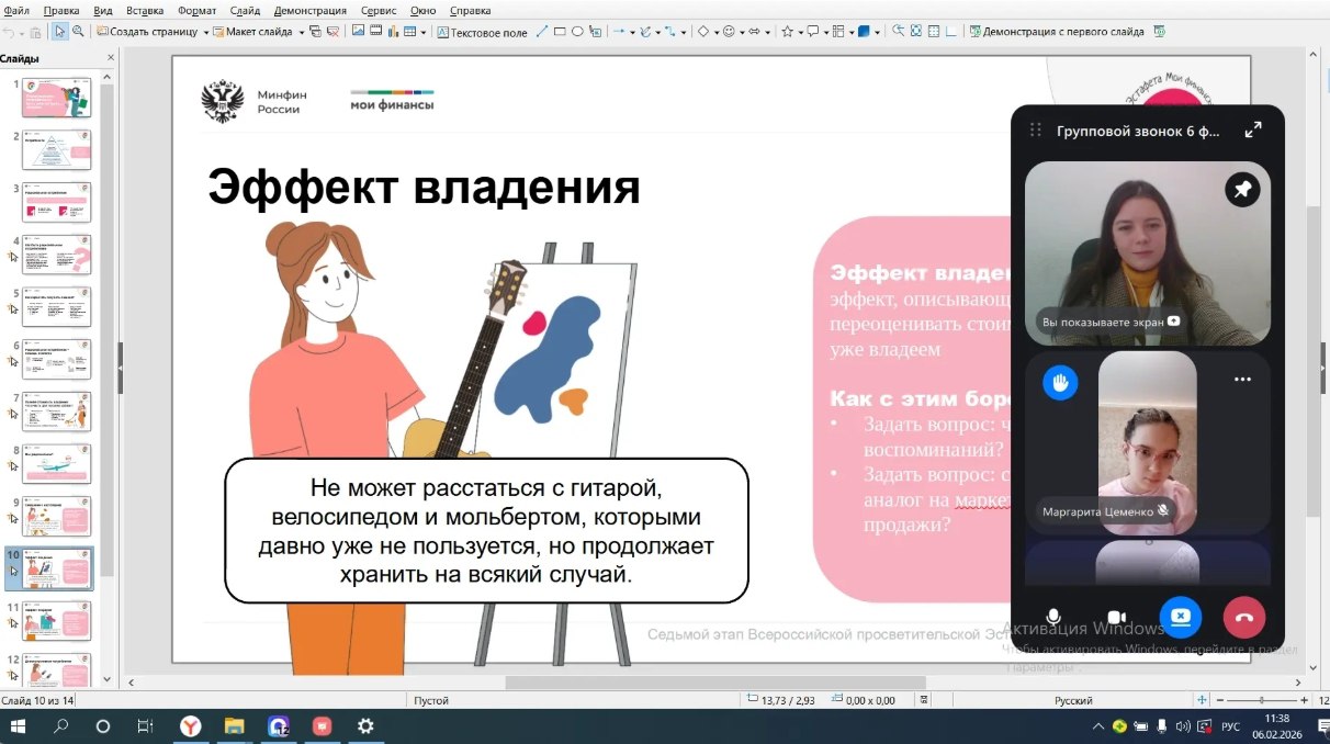 В рамках занятия ребята узнали, как совершать рациональные покупки и грамотно распоряжаться деньгами. Они разобрались, в чём ключевое отличие рациональных покупок от спонтанных. В конце занятия ребята закрепили знания на практике: они решали ситуационные задачи, помогая герою сделать осознанный выбор и избежать необдуманных расходов.