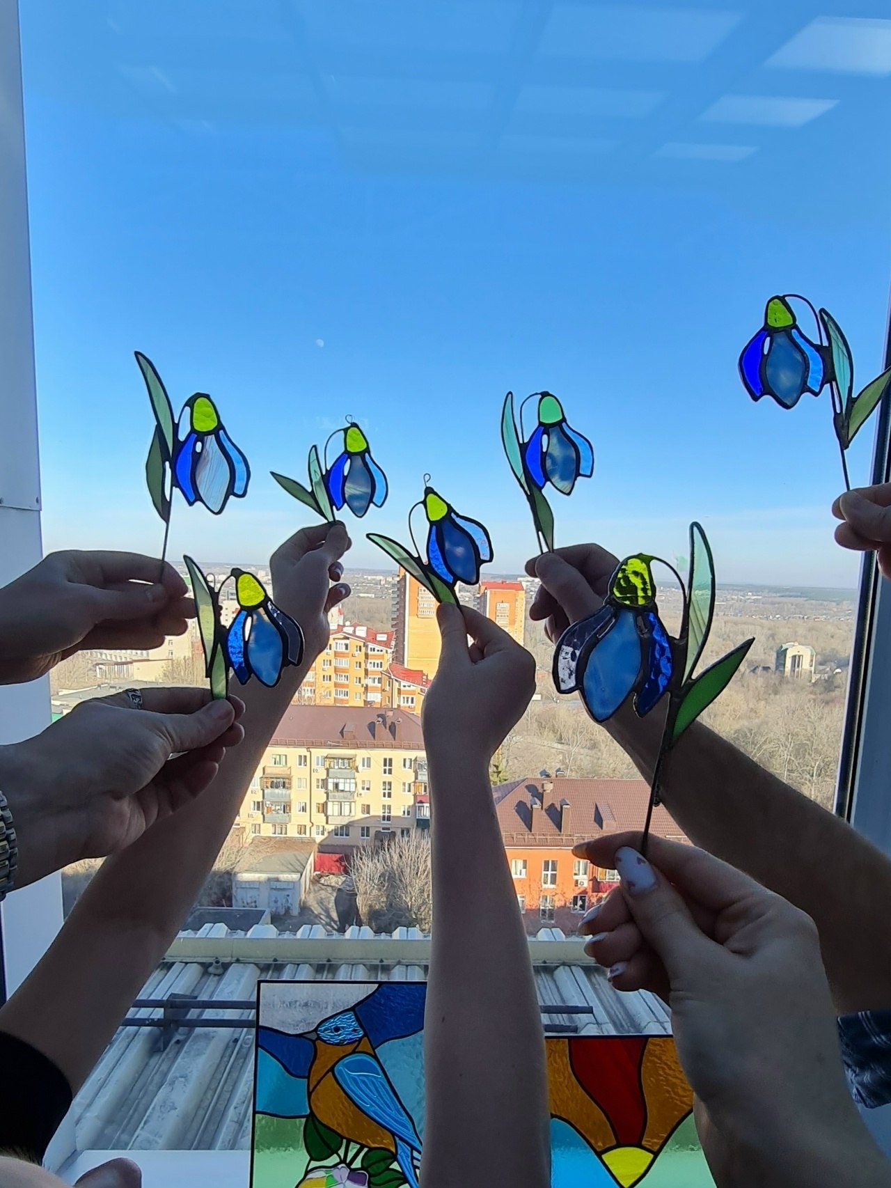 Весна отвоёвывает себе всё больше места. И несмотря на хмурую погоду сегодня, призываем больше улыбаться и замечать прекрасное. Уже видели, как распускаются пролески? Обязательно сходите в лес полюбоваться. А мы делимся с вами витражными цветами. Их сделали участники мастер-класса в студии INGart.
