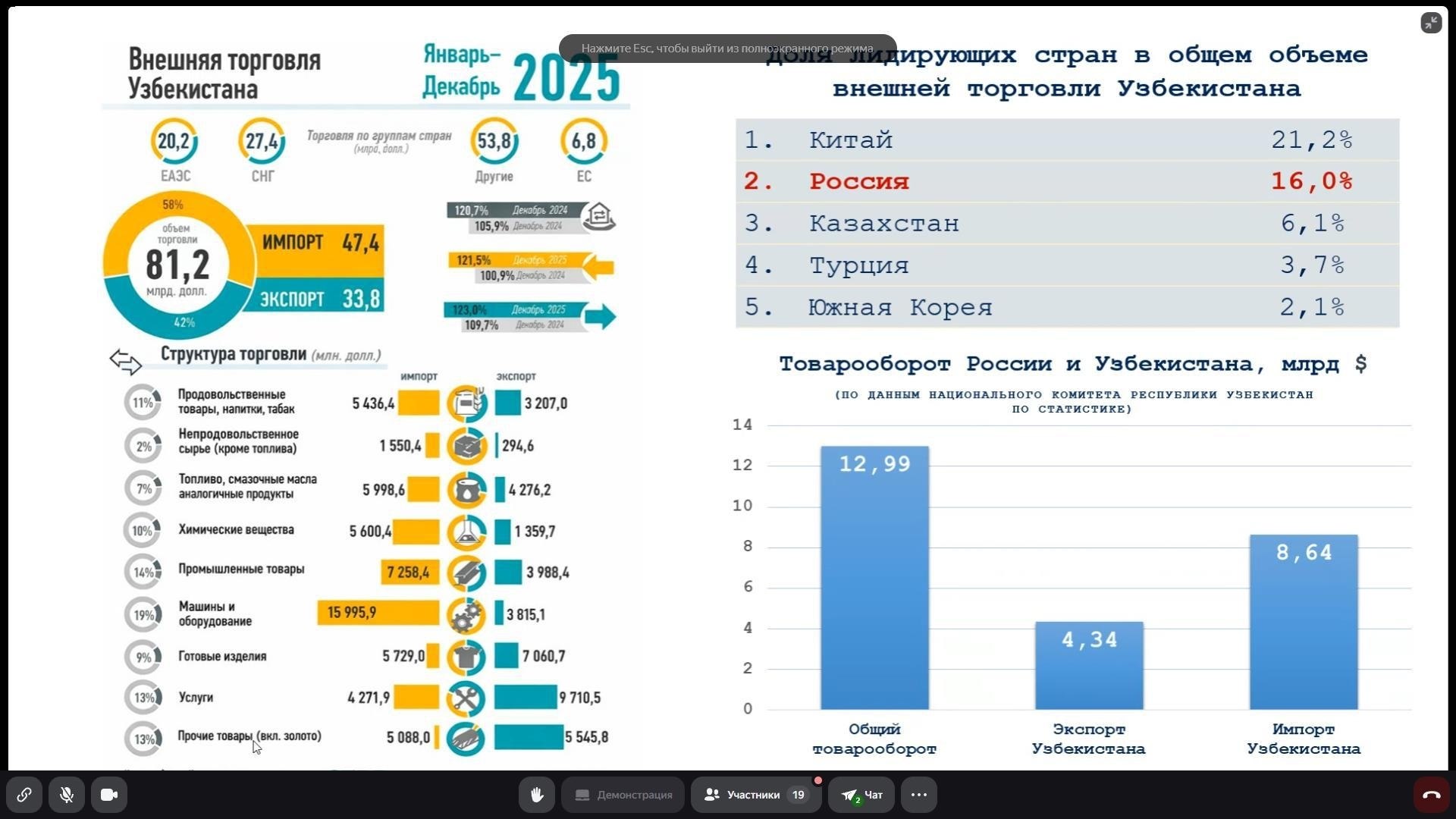 31 марта состоялось мероприятие «Час с Торгпредом», посвященное развитию торгово-экономического сотрудничества между Курской областью и Узбекистаном,