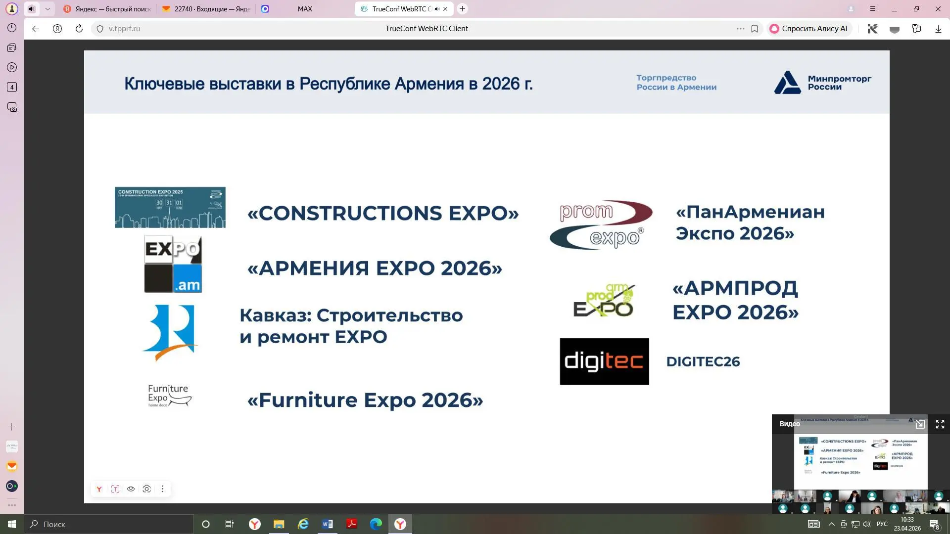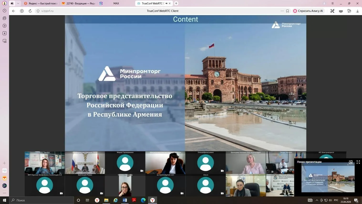 Мероприятие прошло онлайн с участием Торгового представителя Российской Федерации в Республике Армения Сергея Соломина и деловых кругов Курской области.