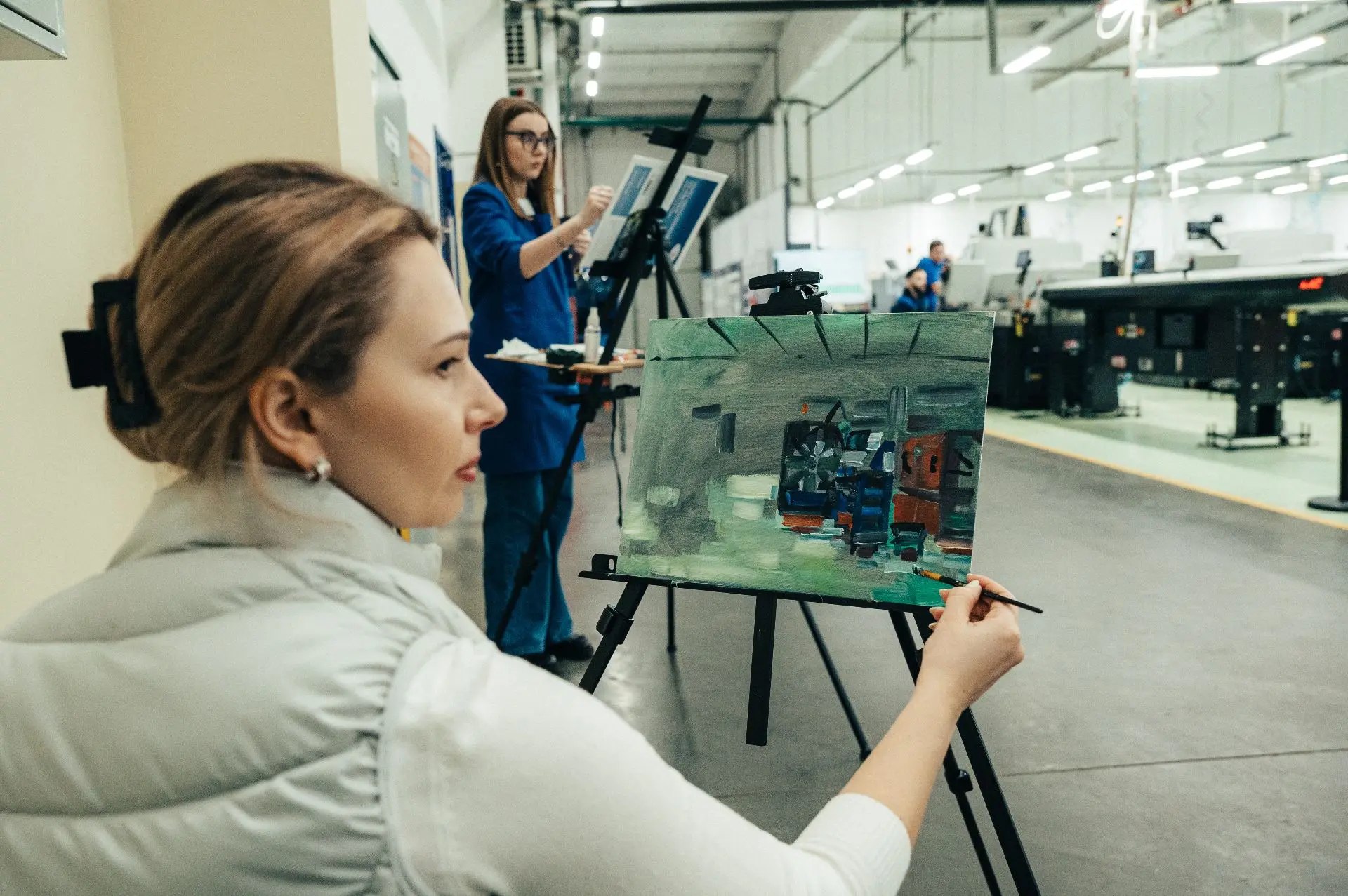 В промышленном технопарке «СОЮЗ» творили художники из Курска, Москвы и Санкт-Петербурга. Участники увидели, как производственные и технологические процессы гармонично сочетаются с индустриальным искусством.