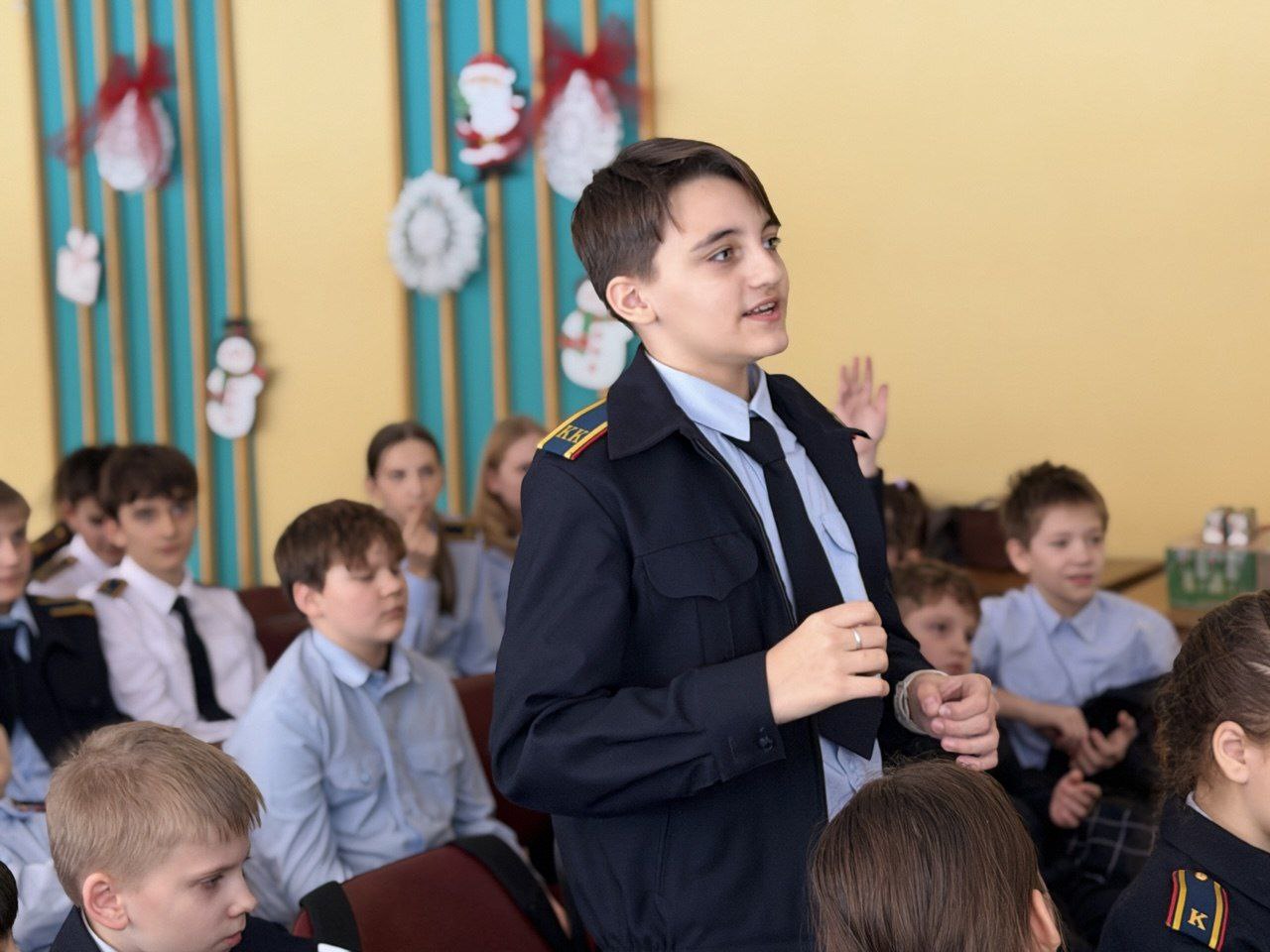 В канун новогодних праздников офицеры регионального следственного управления встретились с кадетами СК России, обучающимися в средней общеобразовательной школе № 27 имени А.А. Дейнеки города Курска.
