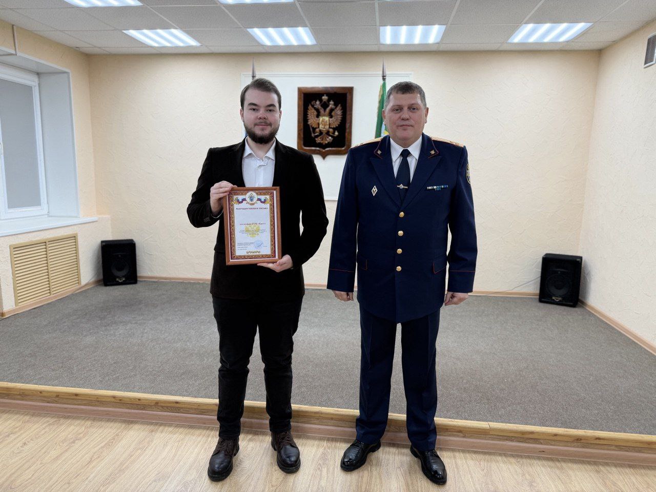 Продолжая торжественное мероприятие, Михаил Иванович от лица следственного управления по Курской области вручил благодарственные письма за активное взаимодействие с офицерами регионального следственного управления -сотрудникам УМВД России по Курской области Егорину Павлу Олеговичу и Князеву Ярославу Игоревичу, а также представителям теле-радио компаний «Курск» и «Сейм».