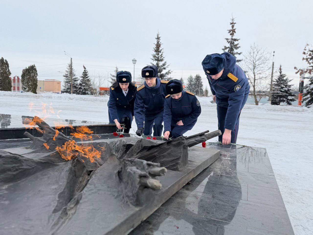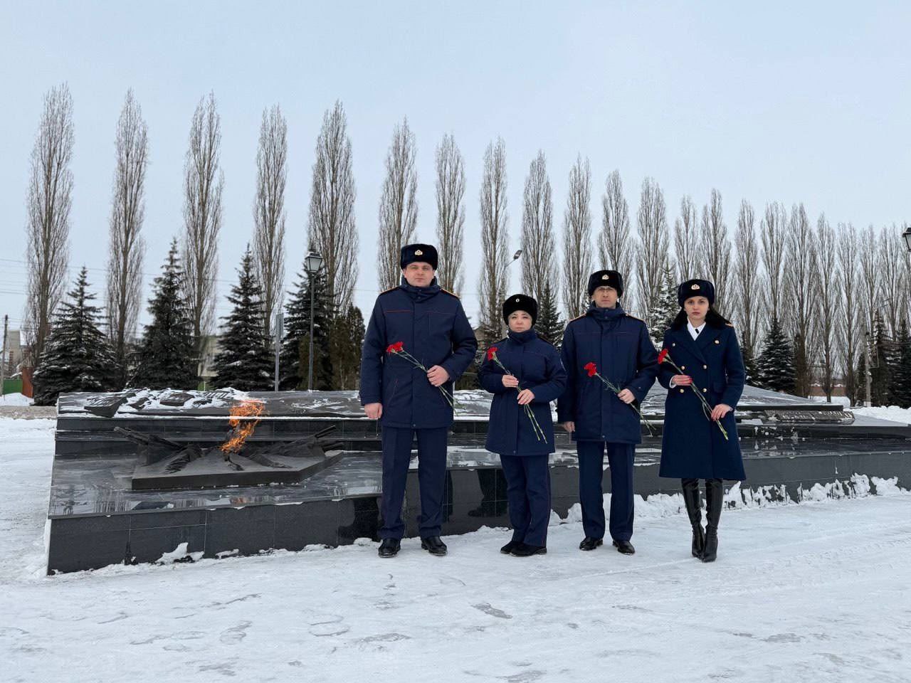 Сегодня офицеры следственного управления СК России по Курской области возложили цветы к вечному огню у могилы неизвестному солдату Курской земли и почтили память павших героев-земляков минутой молчания.