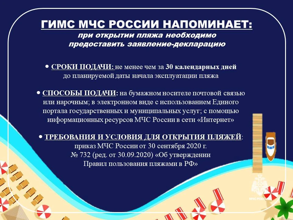 ГИМС МЧС России информирует: при открытии пляжа необходимо предоставить заявление-декларацию