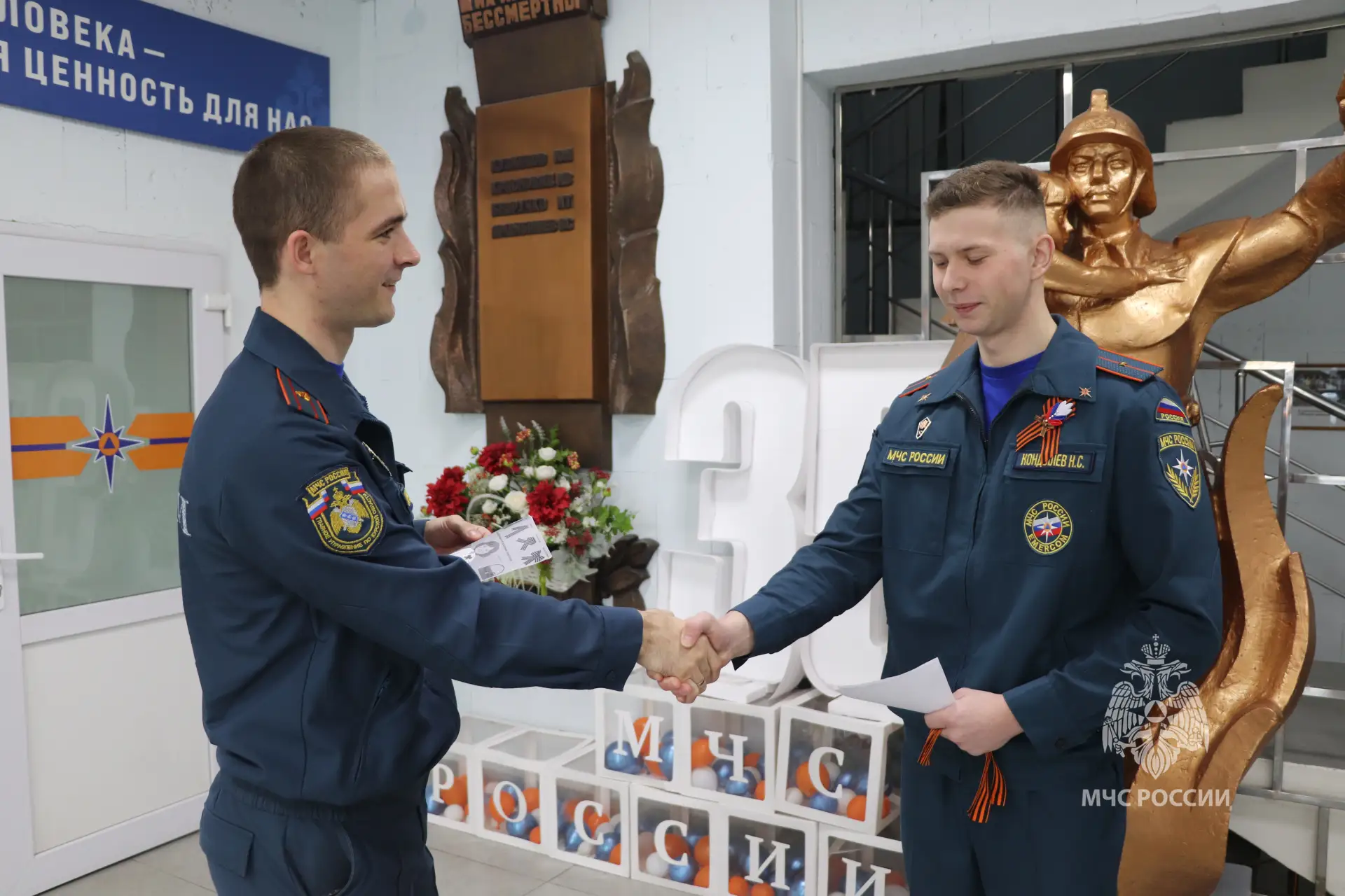 Сотрудники МЧС России присоединились к Всероссийской акции. Вручение лент прошло во всех подразделениях спасательного ведомства. Организаторы также ещё раз напомнили правила ношения – ленту не стоит носить на голове, на сумке, не использовать на кузове автомобиля (в том числе на антенне). Символ Победы принято носить на груди слева в знак того, что подвиг советских солдат навсегда остался в сердце у потомков. Цвета ленты символичны и обозначают «дым и пламя».