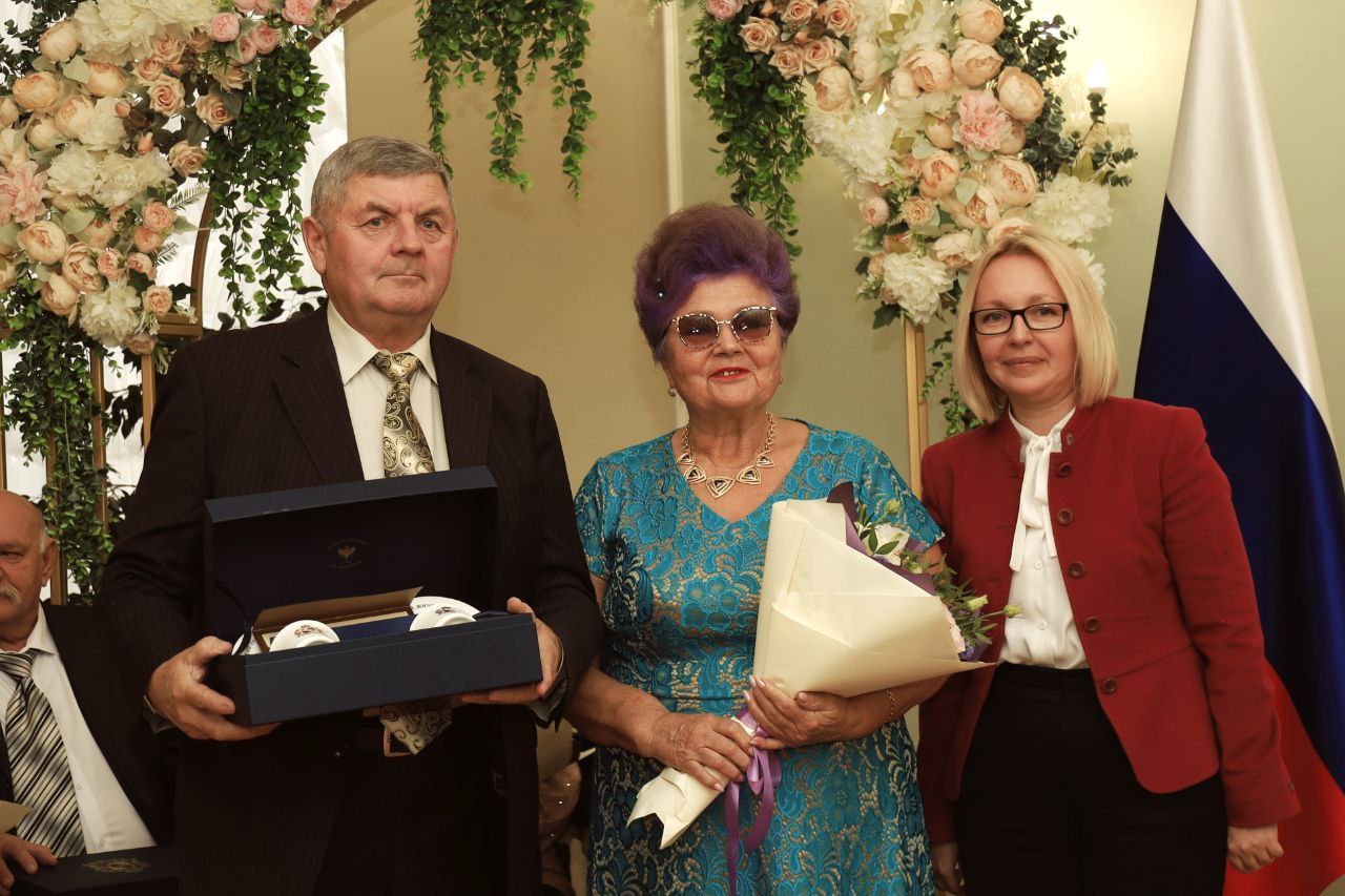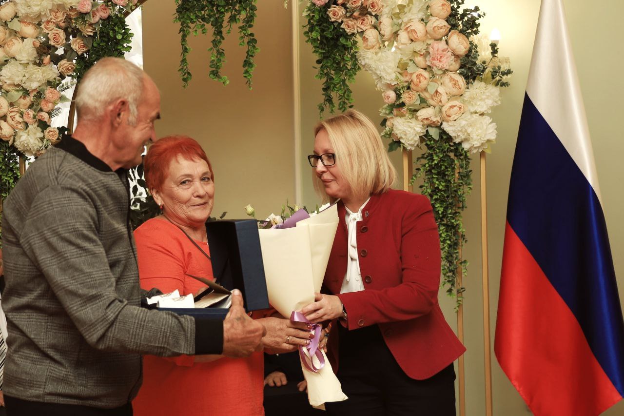 Врио заместителя губернатора Курской области Оксана Крутько от имени губернатора Курской области Александра Хинштейна поздравила семьи, отмечающие золотые и изумрудные юбилеи супружеской жизни. Среди них – семьи фронтовиков и жители приграничных районов: Кореневского, Рыльского и Суджанского районов.