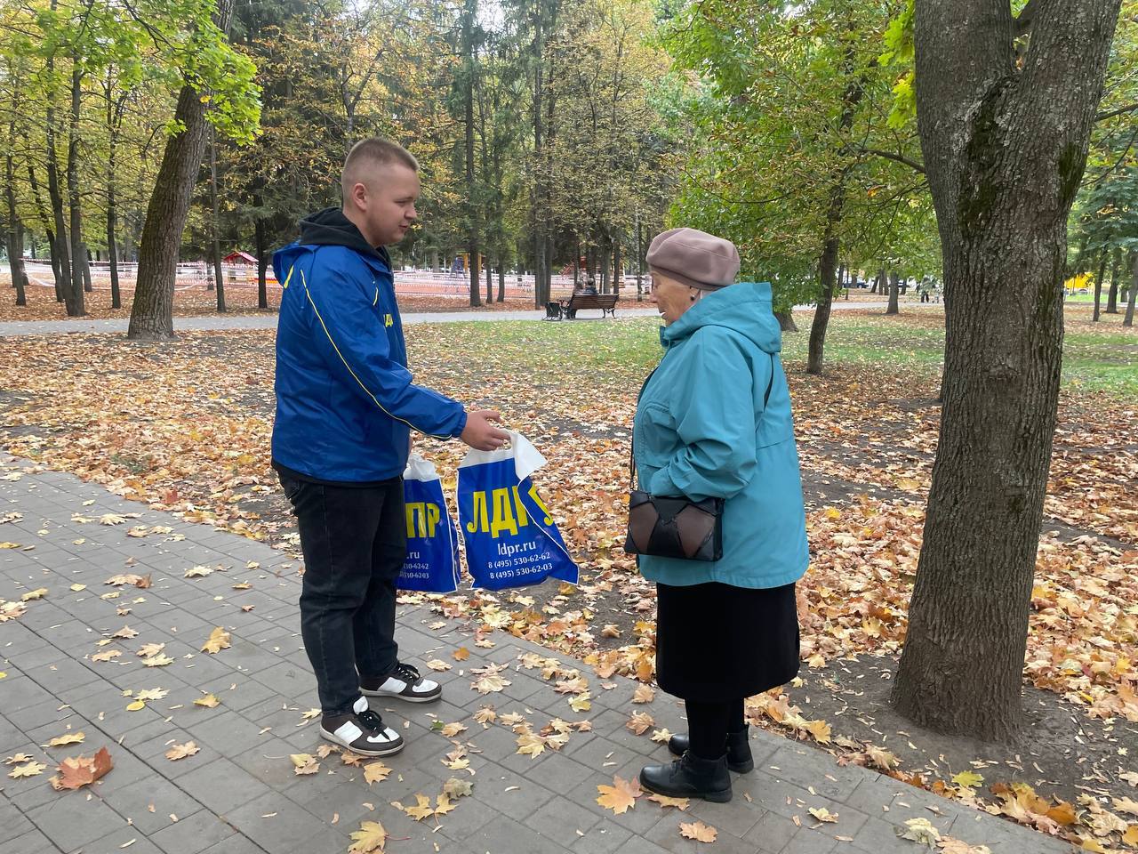 Активисты молодёжной организации ЛДПР в регионе вышли в парк, чтобы лично поздравить пожилых курян и вручить им подарочные наборы от Курского регионального отделения ЛДПР.