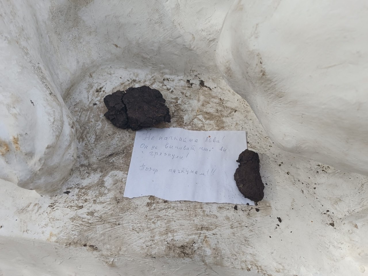 Корреспонденты Курской правды сегодня запечатлели в Парке Пионеров крик души одного из горожан. Неравнодушный курянин оставил записку для посетителей, в которой попросил не пачкать льва. Мы с этим солидарны на скульптуру без слёз не взглянешь.