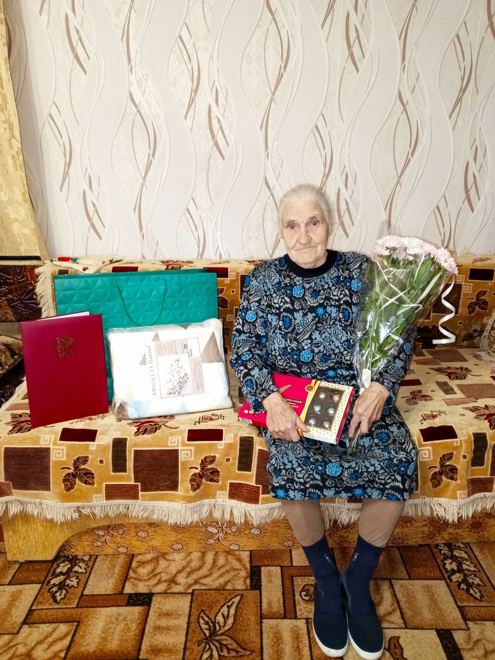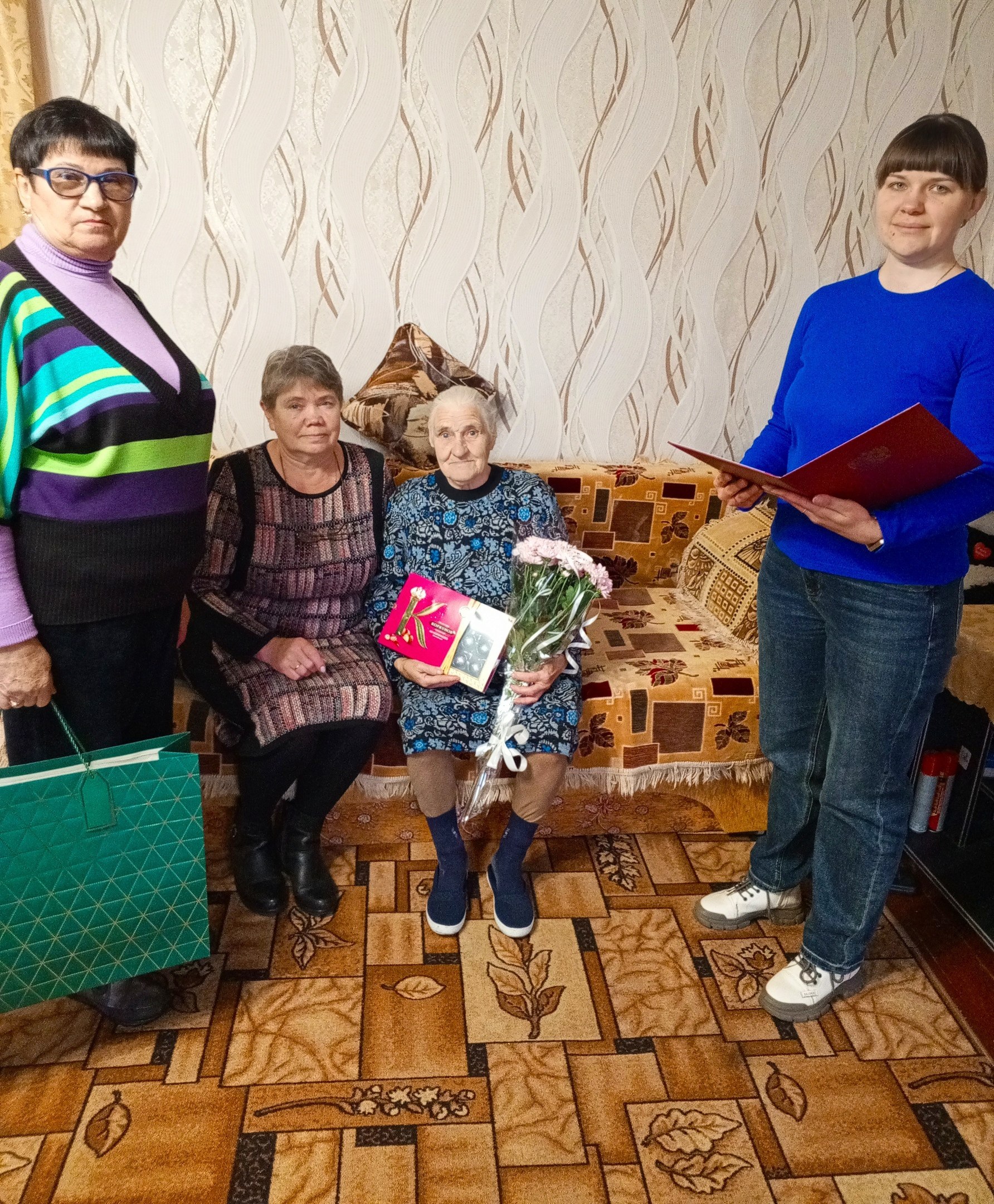 С 85-летним юбилеем сотрудники комплексного центра социального обслуживания Октябрьского района поздравили получателя социальных услуг Маслову Валентину Семеновну.