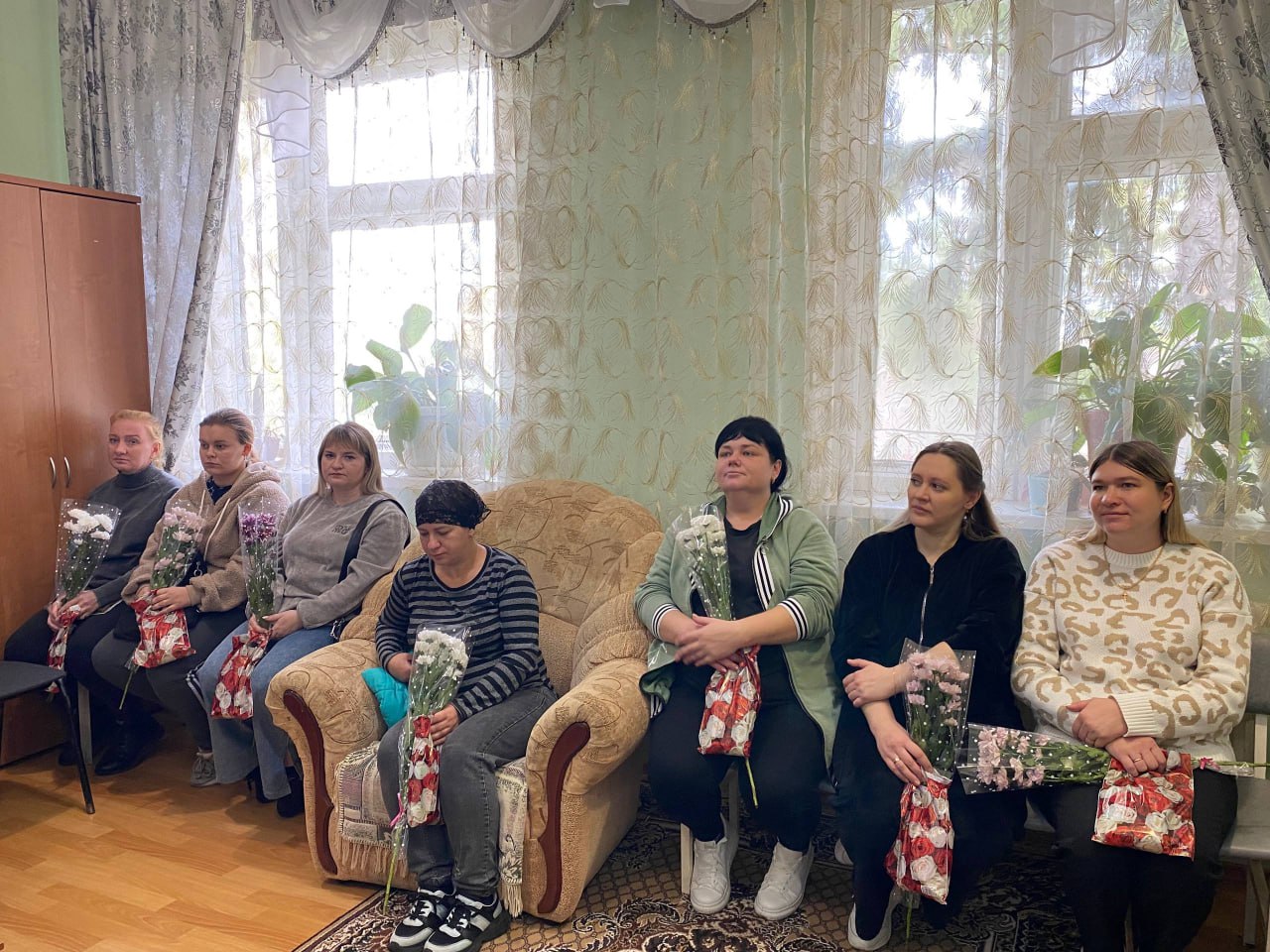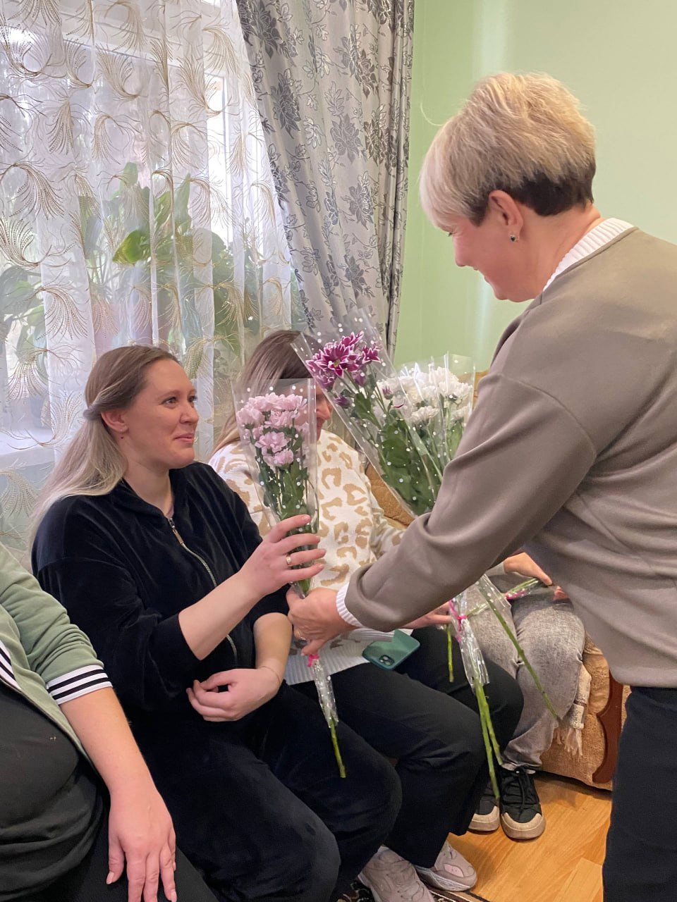 Сегодня я, вместе с главным врачом Касторенской ЦРБ Г.М. Меньшиковым, врачом-акушером-гинекологом и заведующей поликлиникой Л.Г. Вориводиной, а также социальными педагогами, поздравили этих замечательных женщин с таким важным и радостным периодом. Вручили им цветы и небольшие подарки.