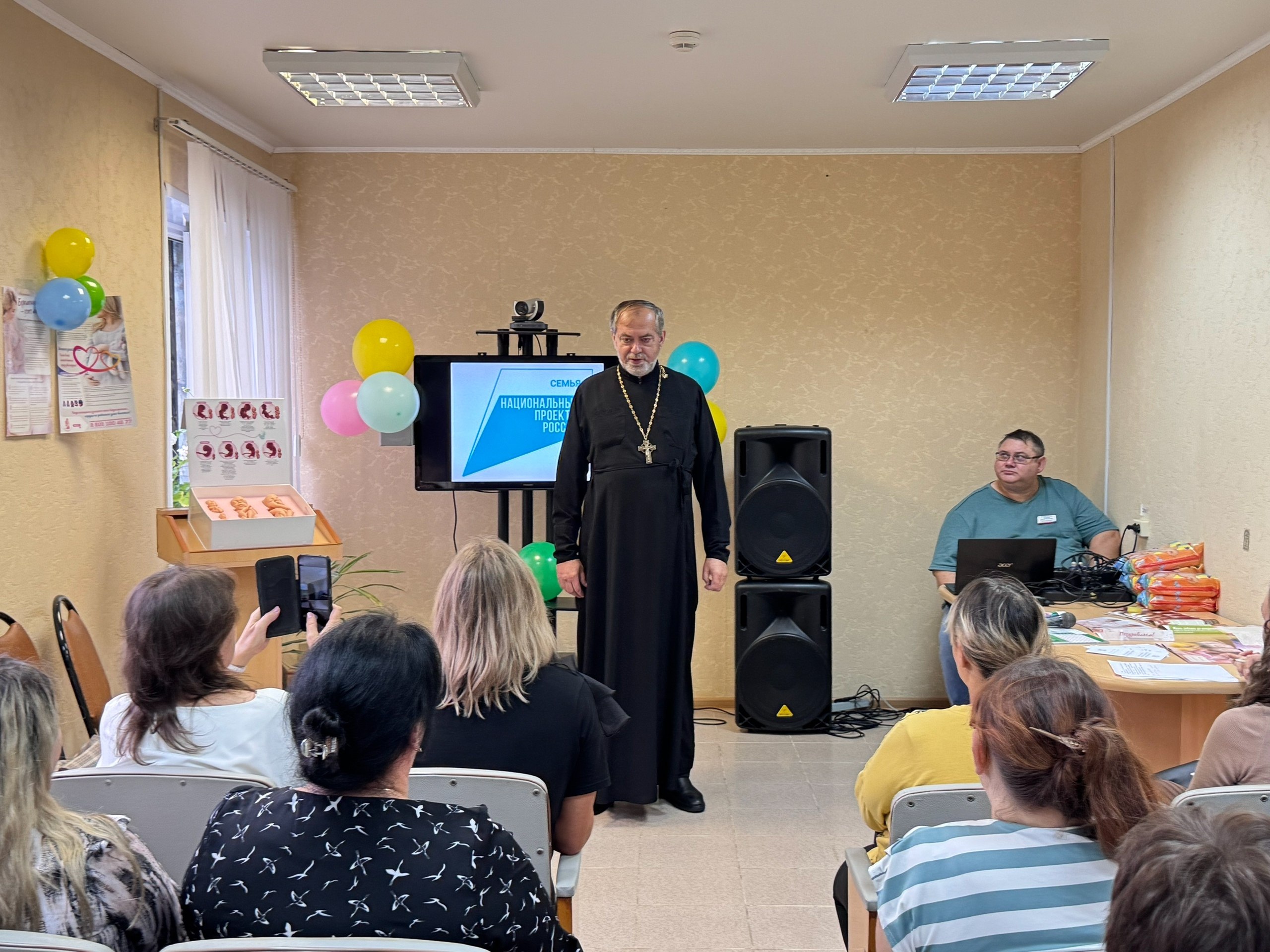 О духовной ценности человеческой жизни говорил священник Храма Покрова Пресвятой Богородицы, иерей Иоанн. Его слова наполнили сердца будущих мам теплом и верой.