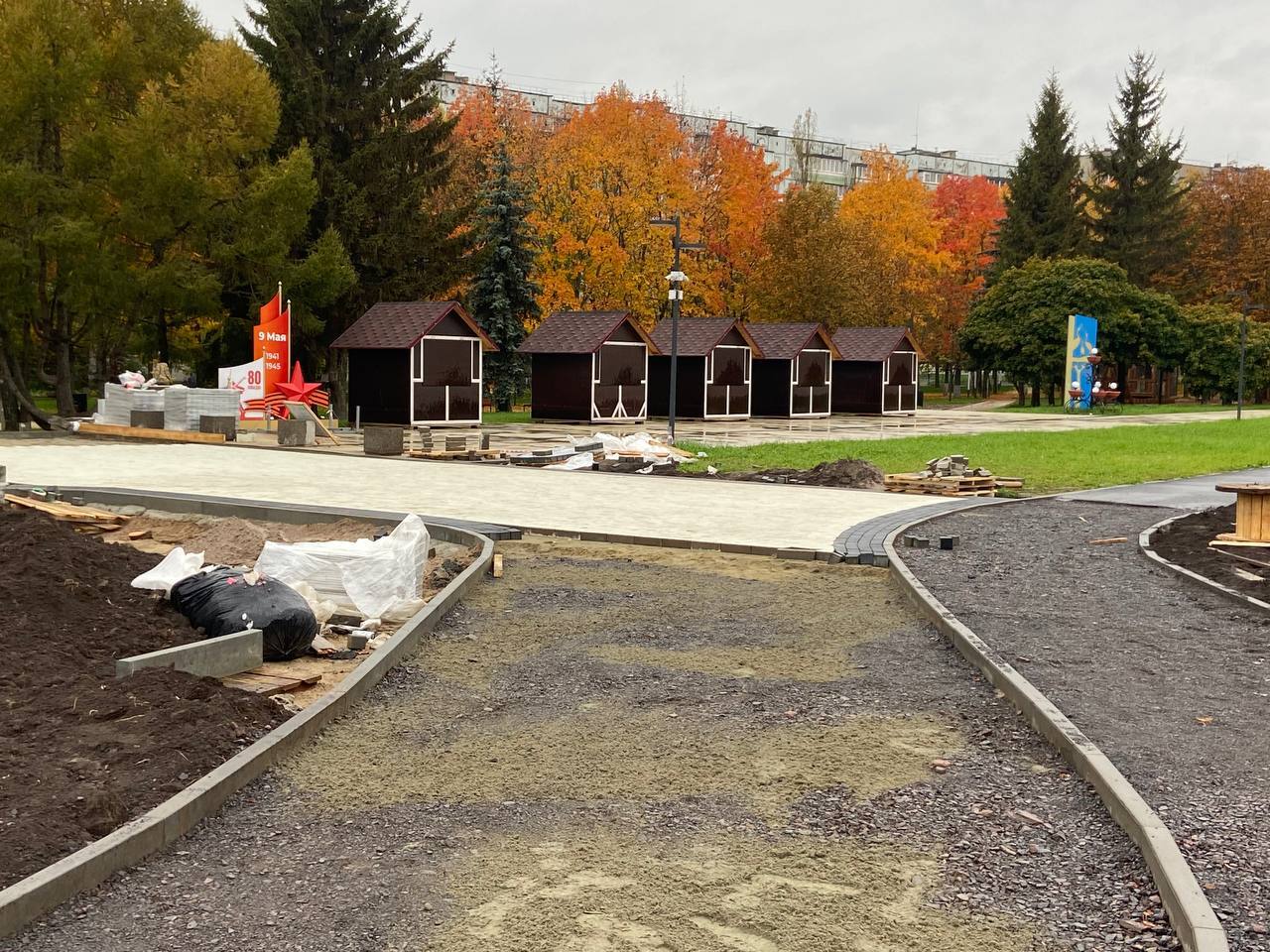 На площади культурно-досугового центра «Русь» продолжается благоустройство. Работы являются продолжением реконструкции Аллеи семьи. Проект курирует КДЦ «Русь» под руководством Владимира Виноградова.