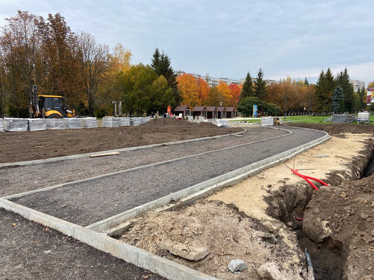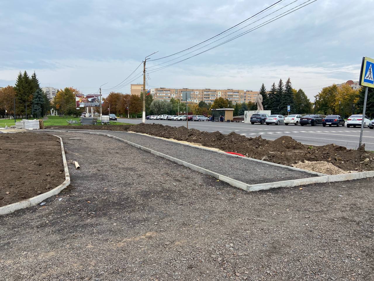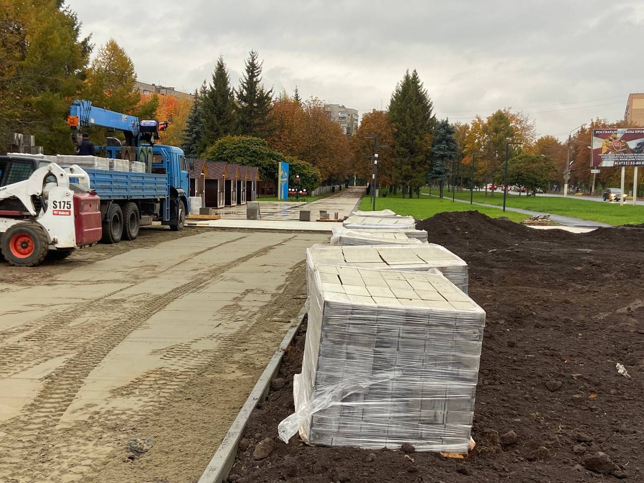 Подрядчик продолжает подготовку основания под новое покрытие пешеходных зон и велосипедной дорожки. Специалисты приступили к укладке тротуарной плитки. Её завезено более 1300 м2 двух видов.