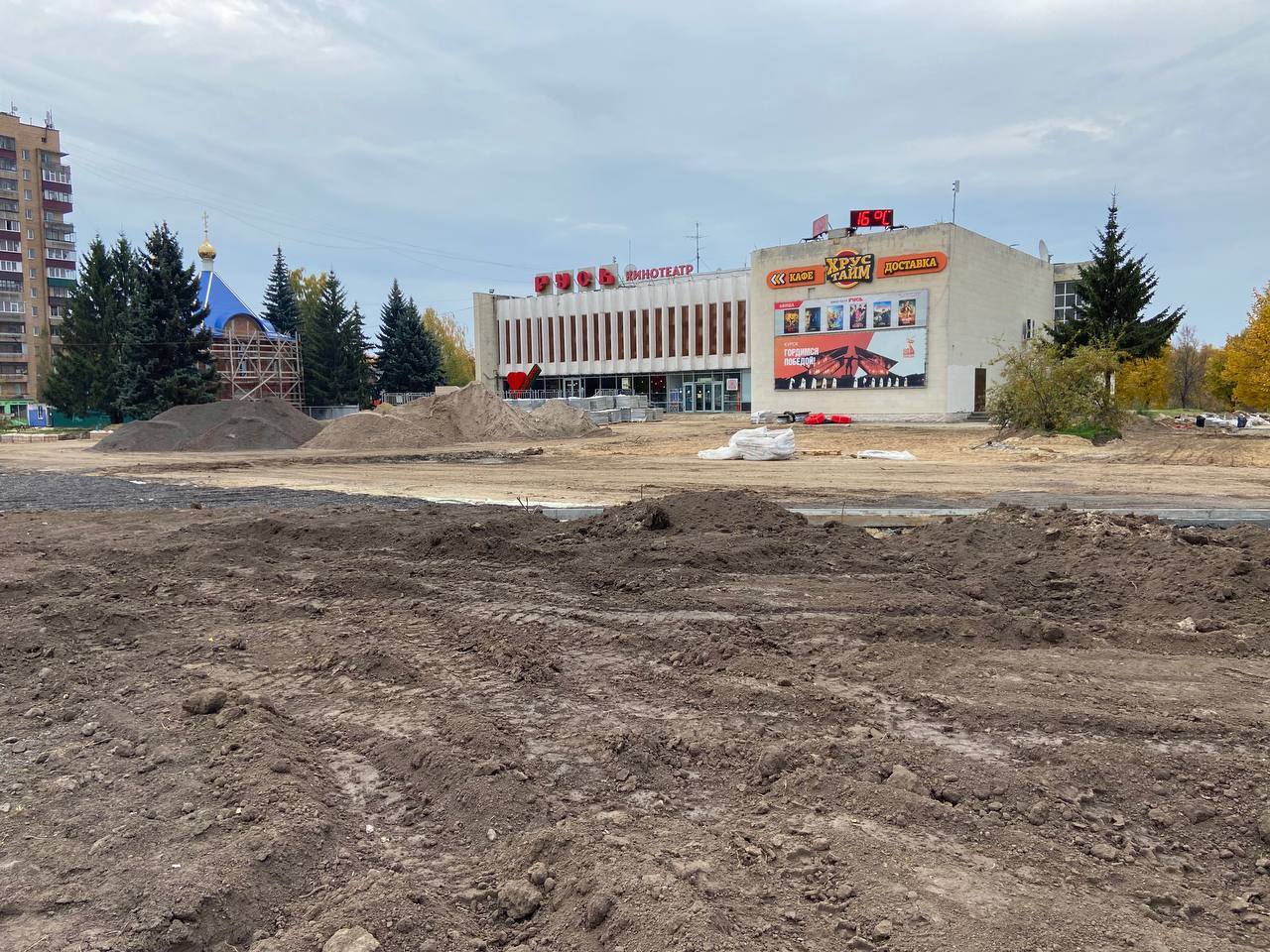 Рабочие выполняют конструктив будущего сухого фонтана, прокладывают силовые кабеля под светильники. Работы идут согласно установленному графику.