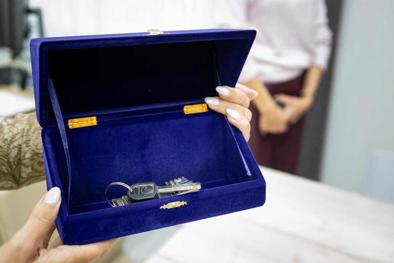 Заместитель главы администрации города Ольга Гранкина вручила договор соцнайма на муниципальную квартиру и ключи от нее Анне – маме несовершеннолетней Алёны. Курянка имеет право на внеочередное получение жилья.