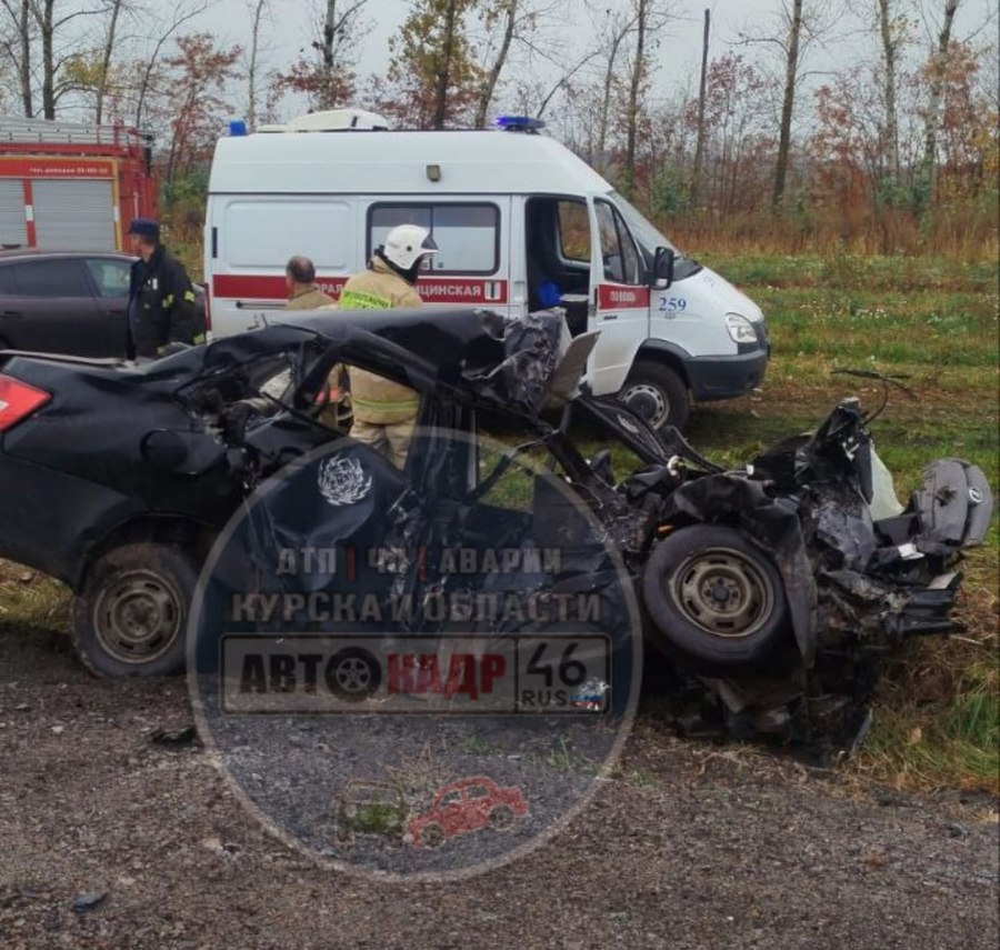 Еще один участник аварии — разбитый легковой автомобиль. По предварительной информации, есть пострадавшие.