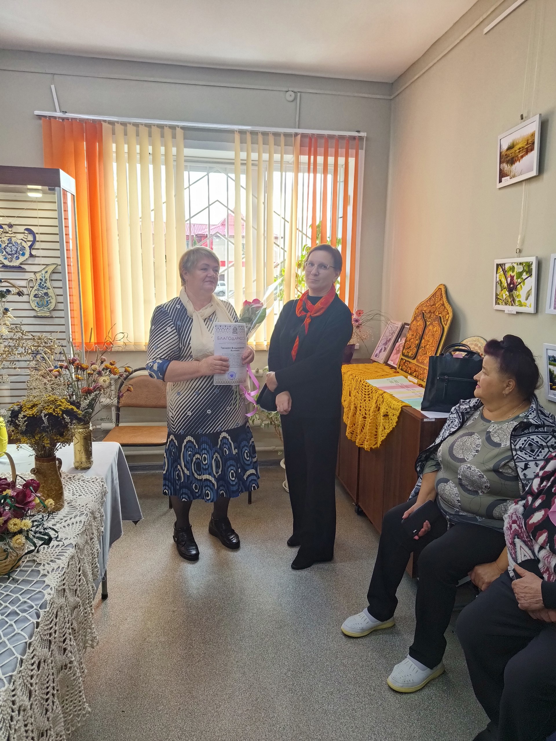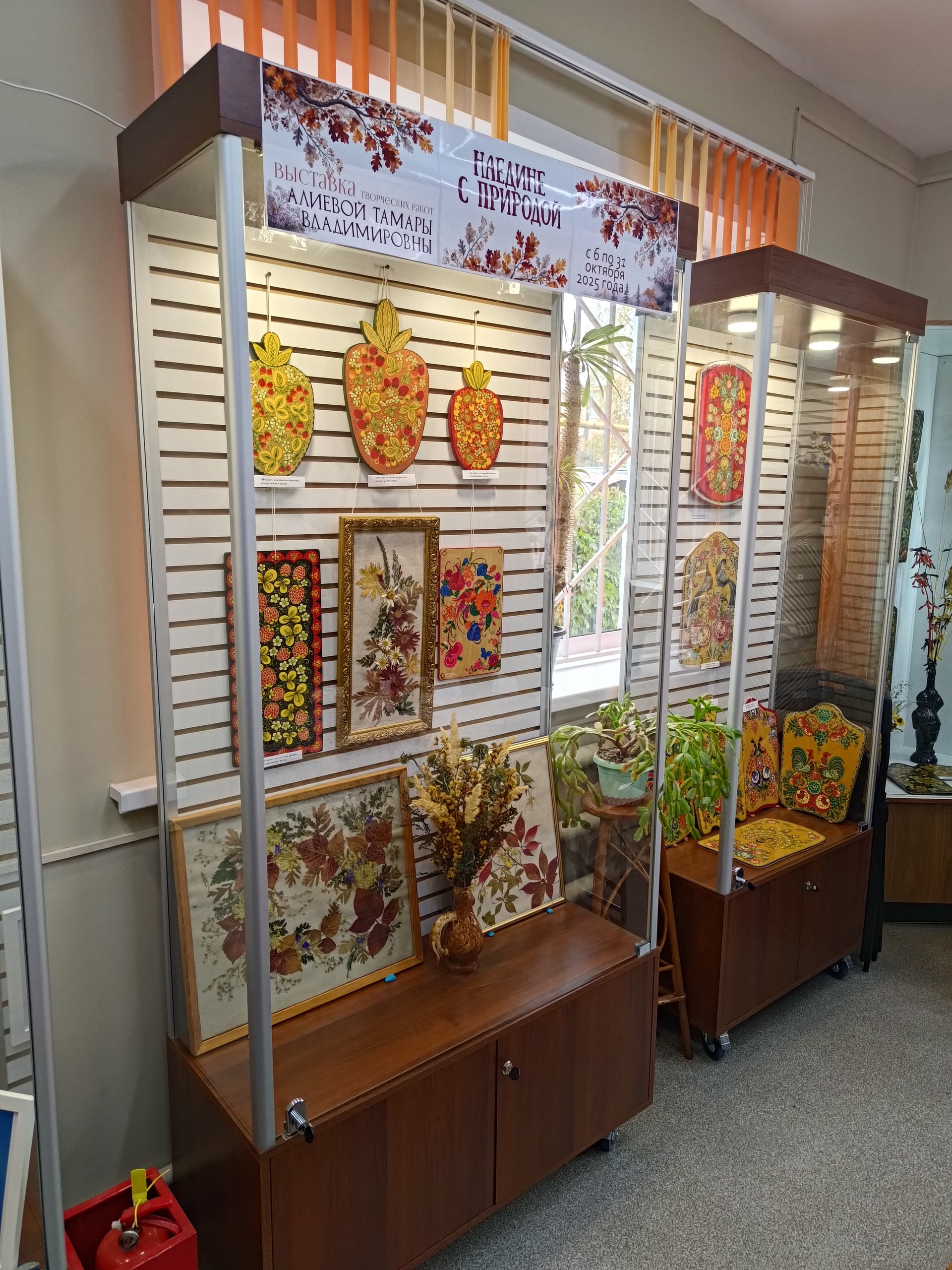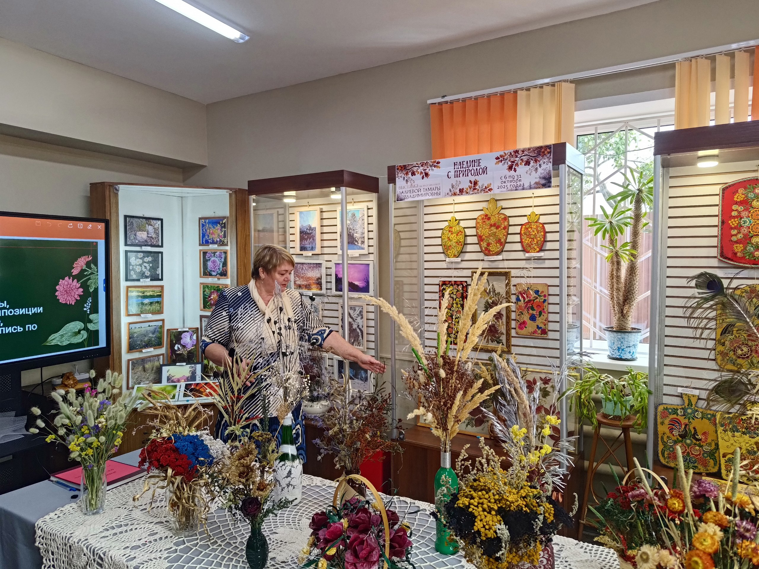 Тамара Владимировна представила флористические композиции, фотографии, а также расписанные деревянные изделия. Вы можете насладиться искусством воочию до конца октября по адресу: п. Прямицыно, ул. Октябрьская, 116
