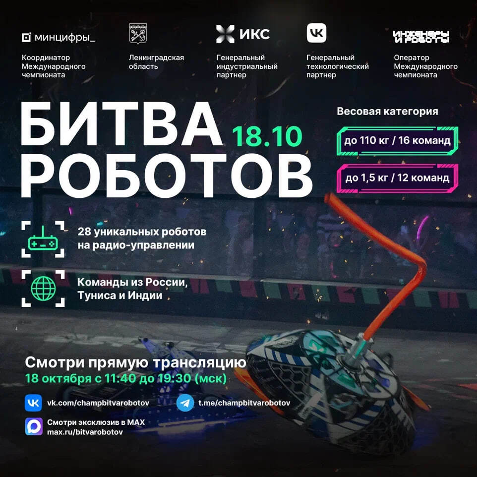 Битва роботов - уникальная площадка, позволяющая российским инженерам продемонстрировать достижения отечественной науки и раскрыть потенциал современных технологий роботостроения.