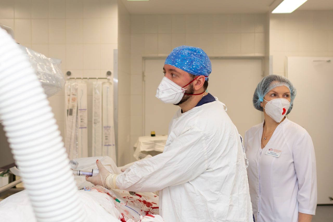 Операцию провели сосудистые хирурги Валерий Казанов и Алексей Подтуркин. Под местным обезболиванием специалисты выполнили небольшой надрез в бедренной артерии, после чего с помощью рентгенологического оборудования направили инструменты к пораженному участку шеи. В артерию установили стент-графт — трубку из полиэстера с металлической опорой, которая укрепила стенку сосуда и предотвратила возможный разрыв. Продолжительность операции составила около часа.