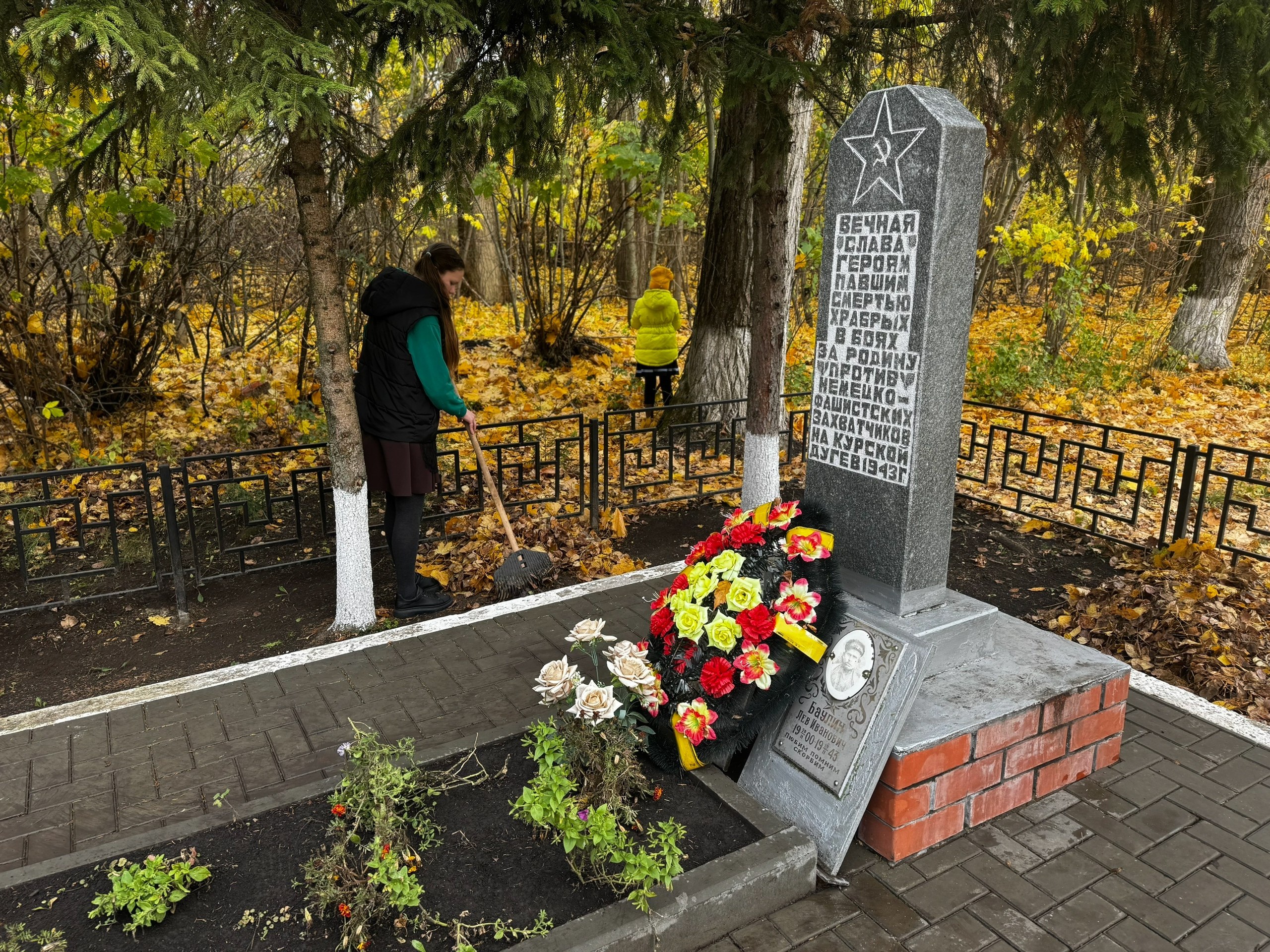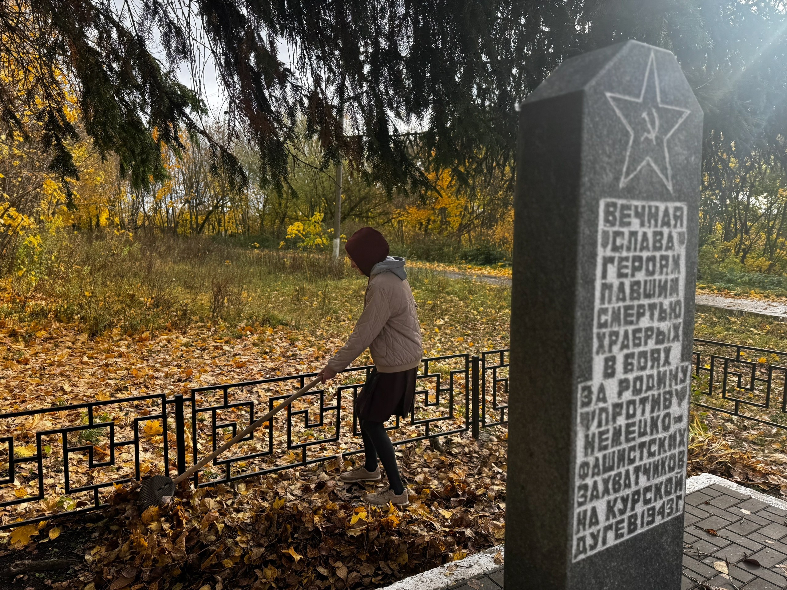 В селе Бобровка Поныровского района учащиеся первичного отделения МКОУ «Бобровская ООШ», входящие в тимуровский отряд, провели работы по благоустройству братского захоронения. Ребята очистили территорию от опавших листьев.