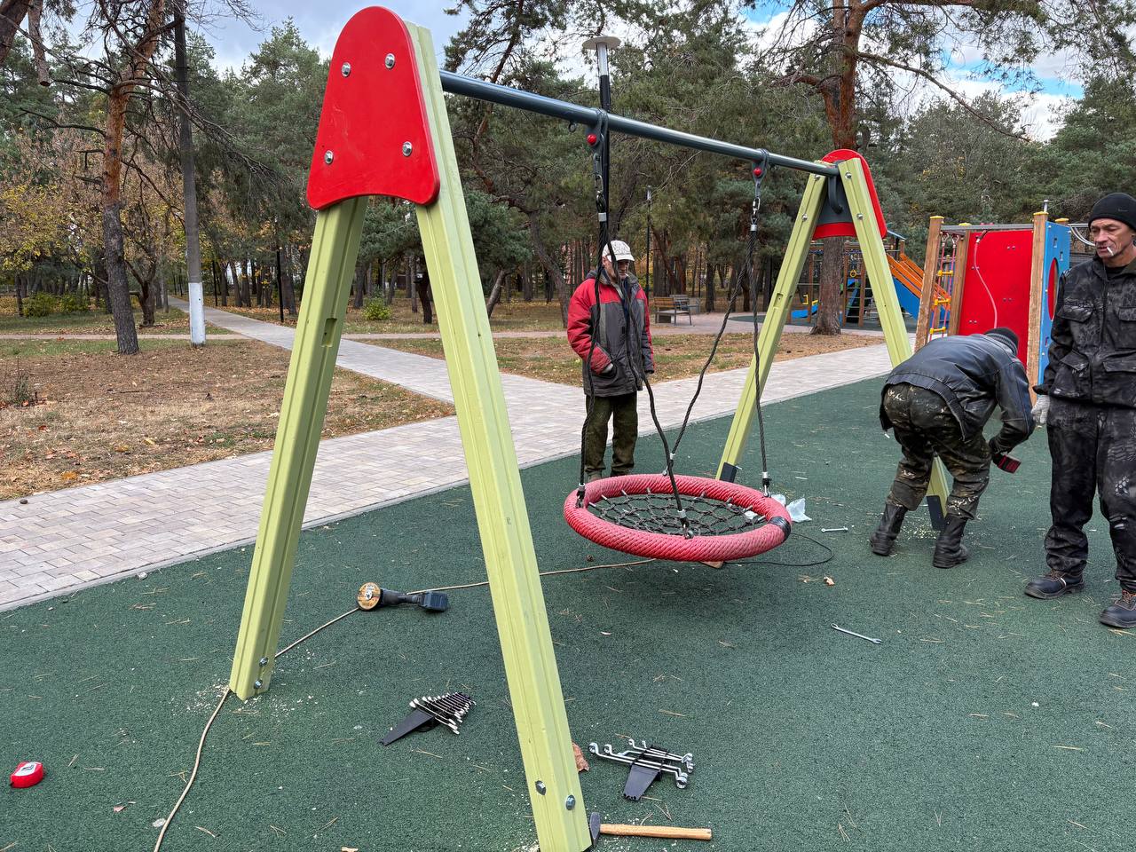 Подрядчик обновляет лавочки, урны и детское оборудование в общественных пространствах Курска