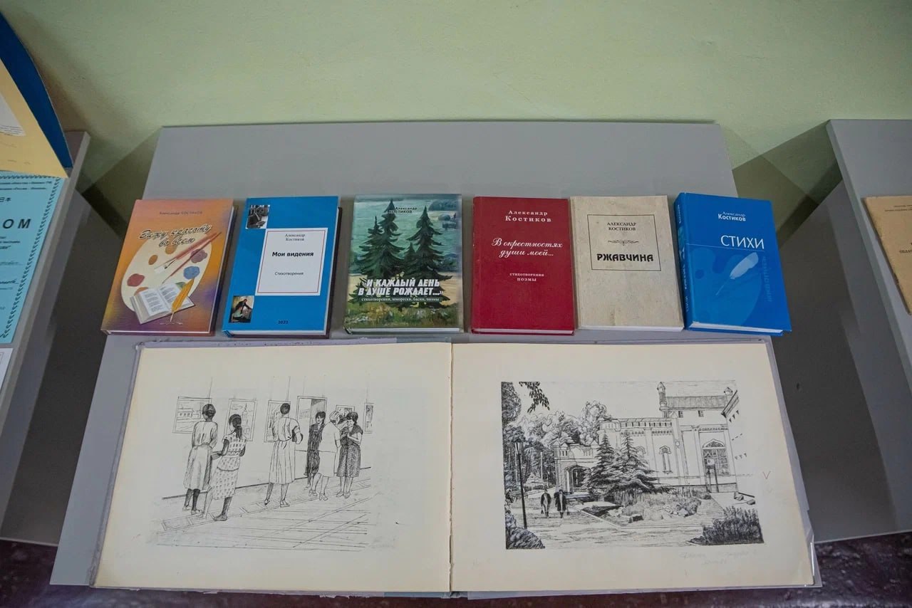 В школе № 1 открыли выставку работ заслуженного учителя РФ Александра Костикова.