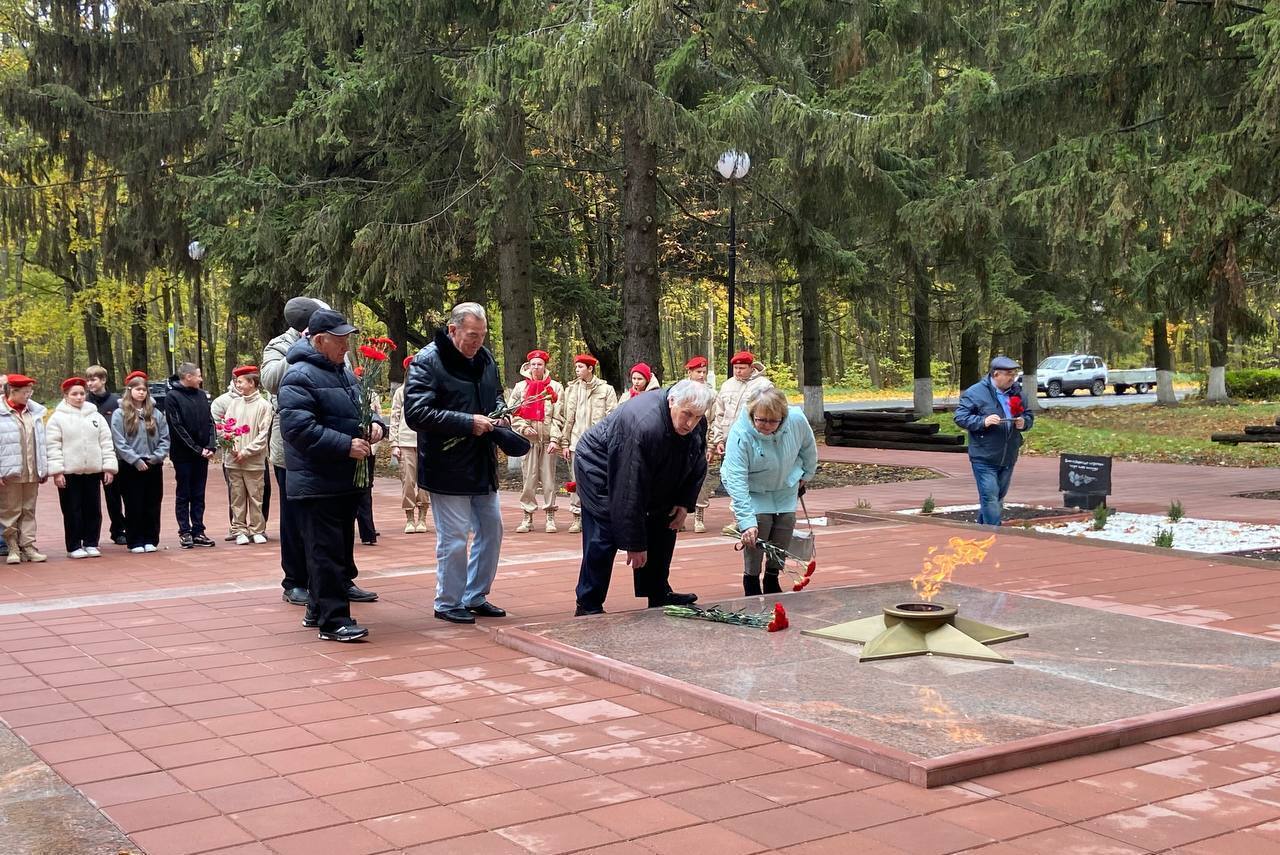 Представители администраций Железногорского района и города Железногорска, представители Железногорского таможенного пункта, Первые города Железногорска и Железногорского района почтили память погибших минутой молчания и возложили цветы к Вечному огню.