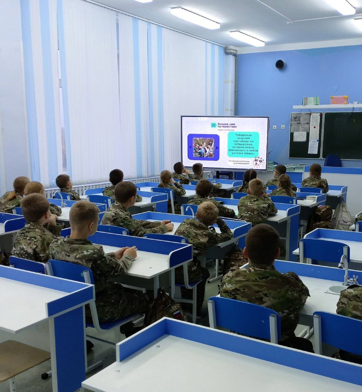 Во время занятия ребята вместе с педагогами говорили о том, что сила России — в единстве её народов, обсудили, как этот принцип воплощен в жизни наших городов, вспомнили, как в далеком 1612 году люди объединились в народное ополчение и освободили Москву от польских интервентов.
