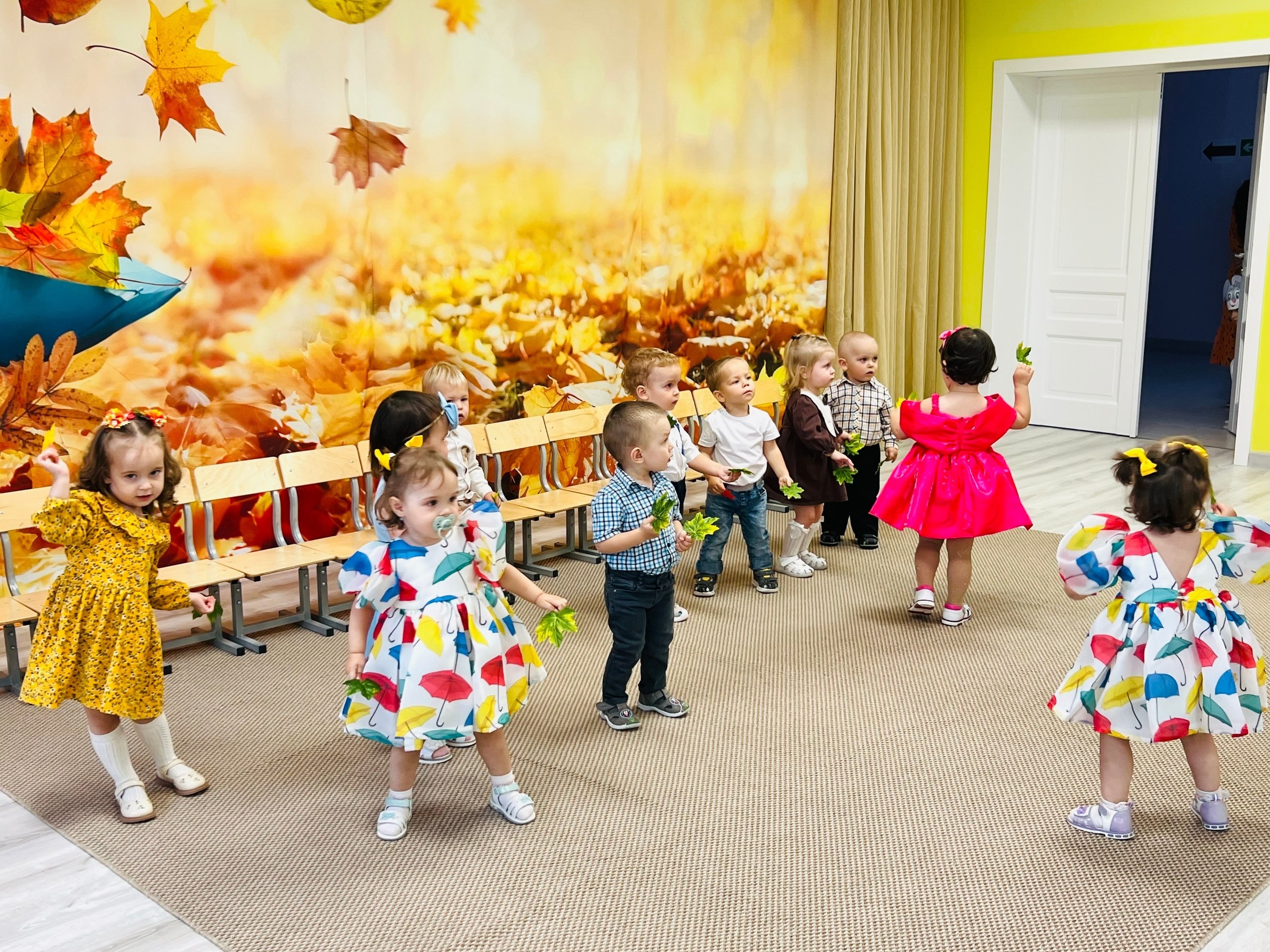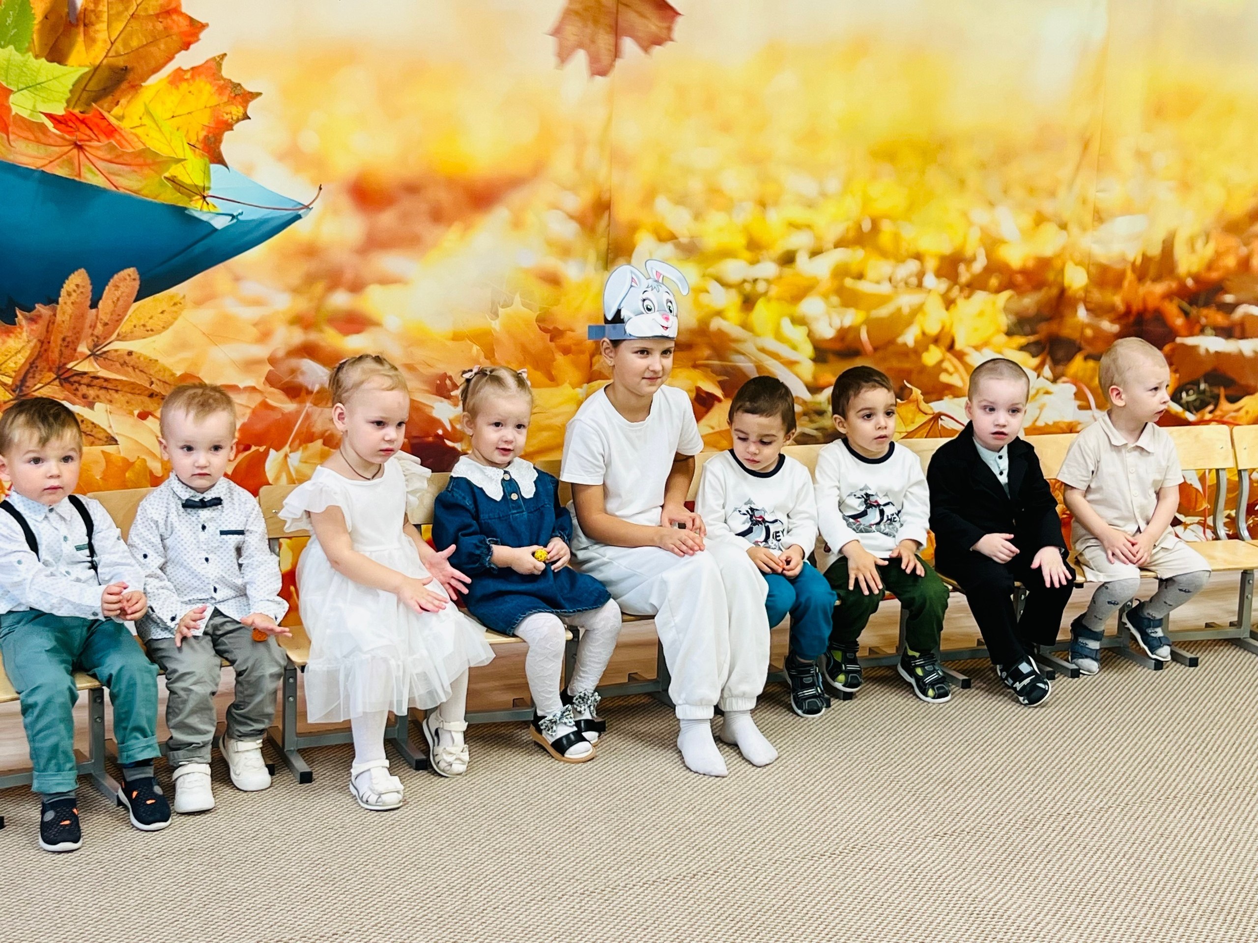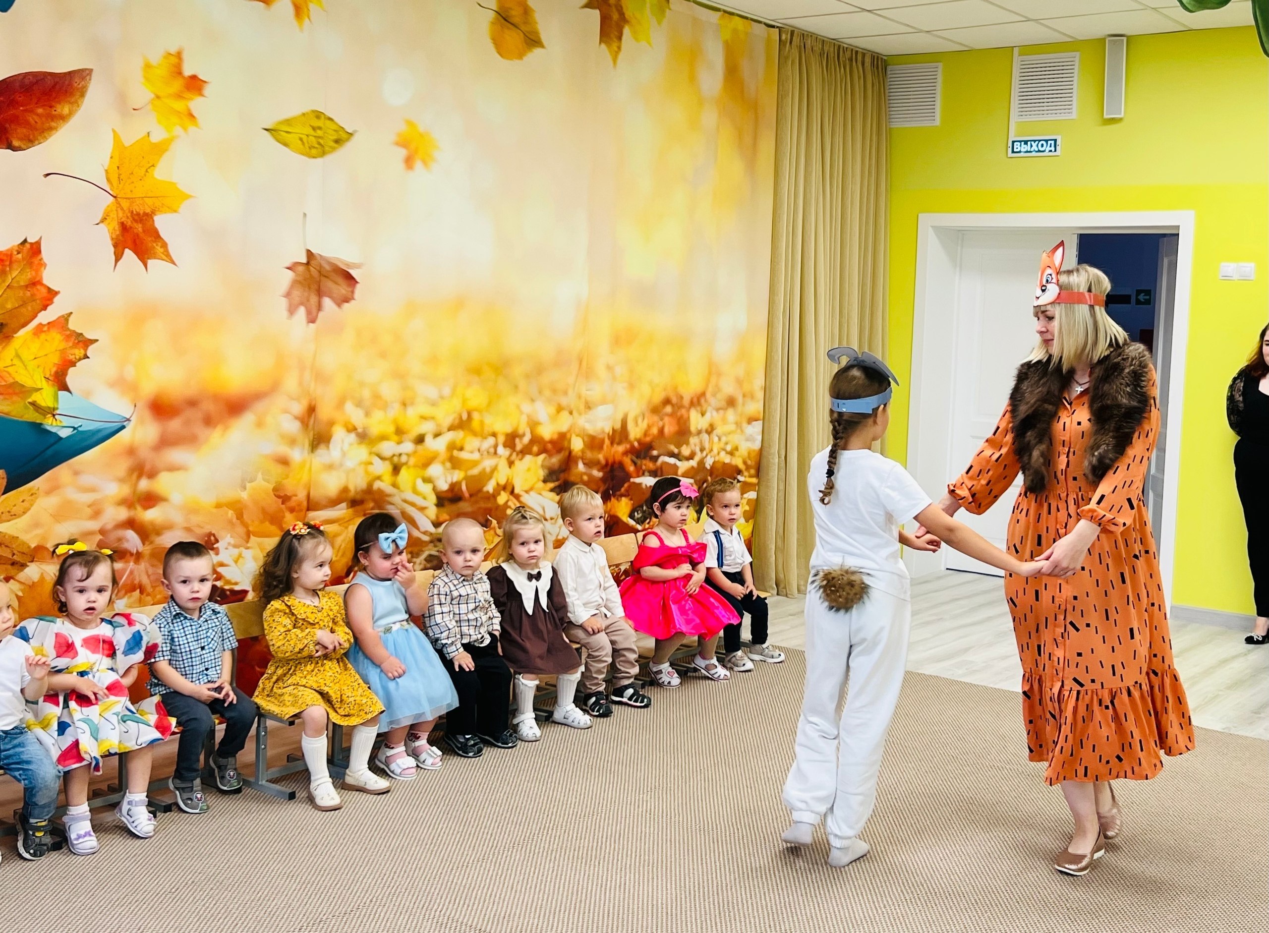 Особенным гостем стала прекрасная Осень, вместе с которой пришли Зайчик и Лисичка. Вместе со сказочными героями наши маленькие артисты танцевали и весело участвовали в играх .Завершилось мероприятие настоящим угощением от щедрой Осени — ароматными и вкусными яблоками.