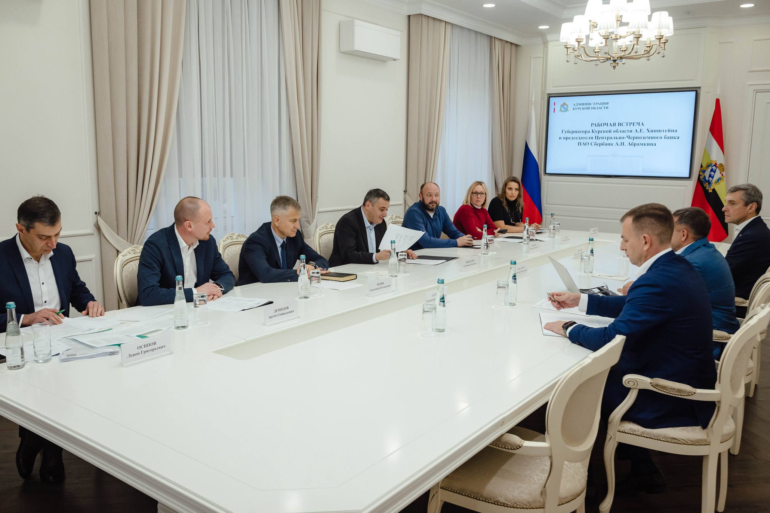 Сегодня губернатор Курской области Александр Хинштейн встретился с председателем Центрально-Чернозёмного банка Сбербанка Александром Абрамкиным.