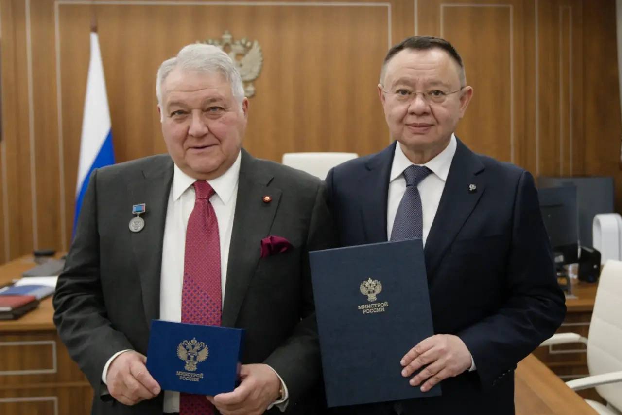 Глава Минстроя России Ирек Файзуллин наградил Михаила Ковальчука знаком «Почетный строитель России», присваиваемым за заслуги и вклад в развитие строительной отрасли.