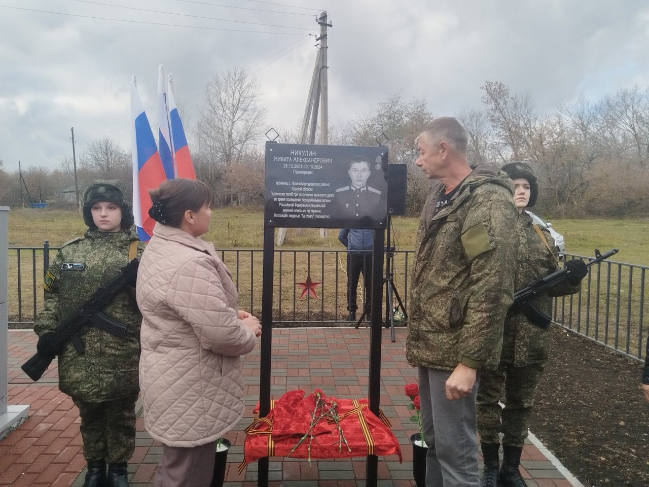 Он был посвящён открытию памятной мемориальной доски настоящему русскому воину, уроженцу с. Пузачи, погибшему при исполнении воинского долга в ходе специальной военной операции, Никулину Никите Александровичу.