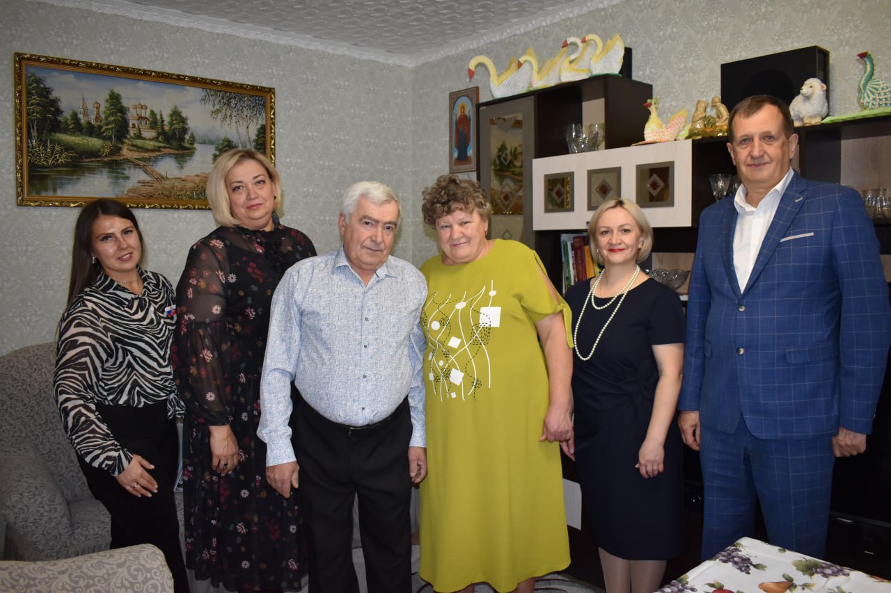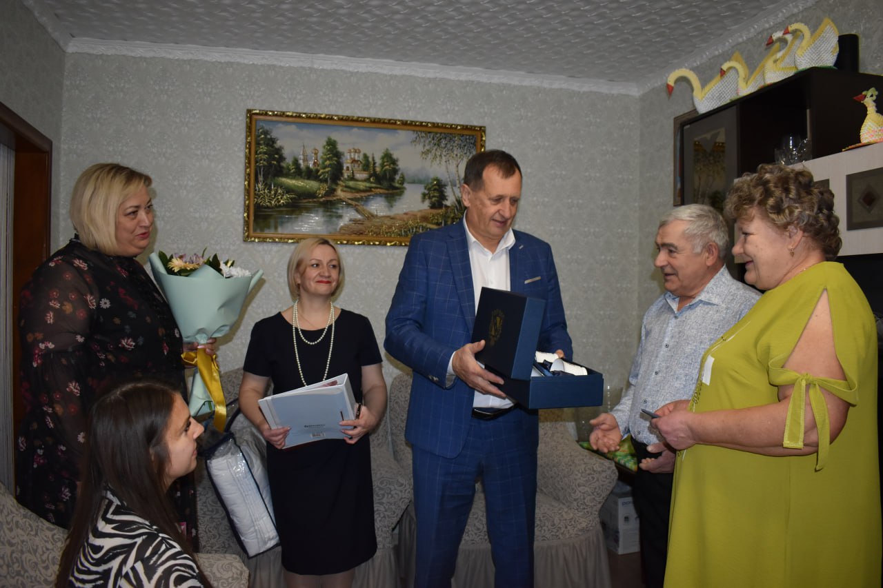 С удовольствием поздравил "золотых" юбиляров с этим замечательным событием и передал поздравительную открытку от Губернатора Курской области Александра Хинштейна, а также символический подарок - чайные пары, изготовленные на Императорском фарфоровом заводе Северной столицы.