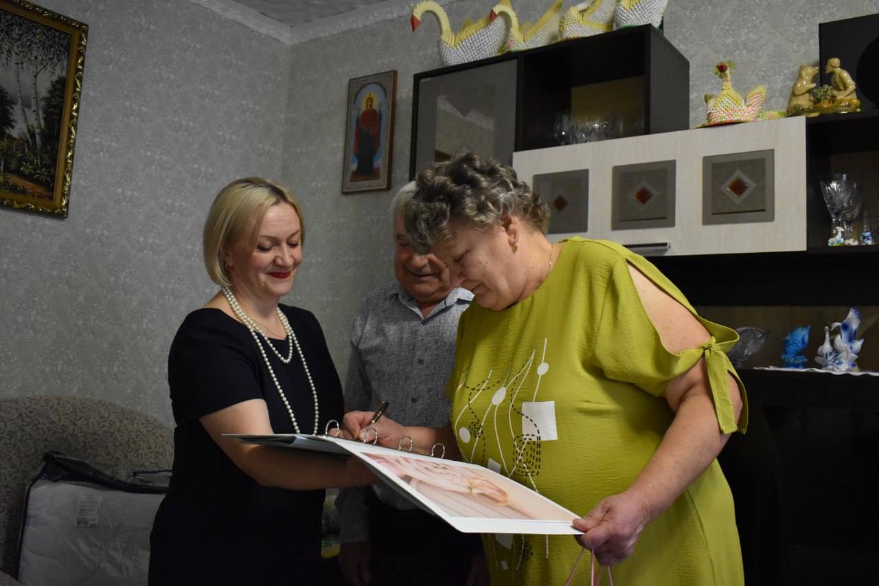 Теплые пожелания здоровья и счастья в адрес виновников торжества прозвучали и от моего заместителя Валентины Елисеевой, главы Студенокского сельсовета Екатерины Пахомой, консультанта районного отдела ЗАГС Ольги Шатохиной.
