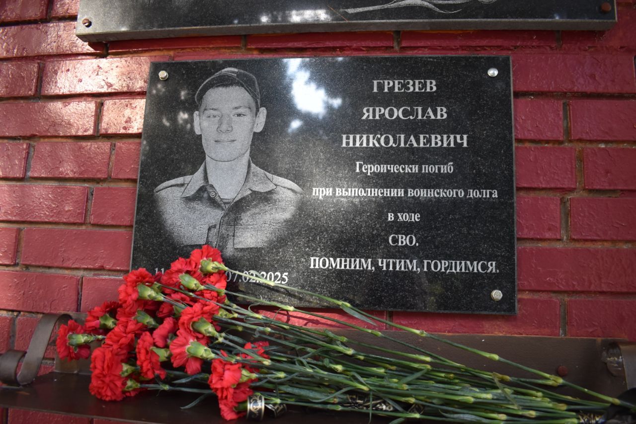 Почетное право открыть мемориальную доску выпускнику школы Ярославу Николаевичу Грезеву было предоставлено родителям героя Ирине Михайловне и Николаю Николаевичу Грезевым, главе Железногорского района Александру Дмитриевичу Фролкову.