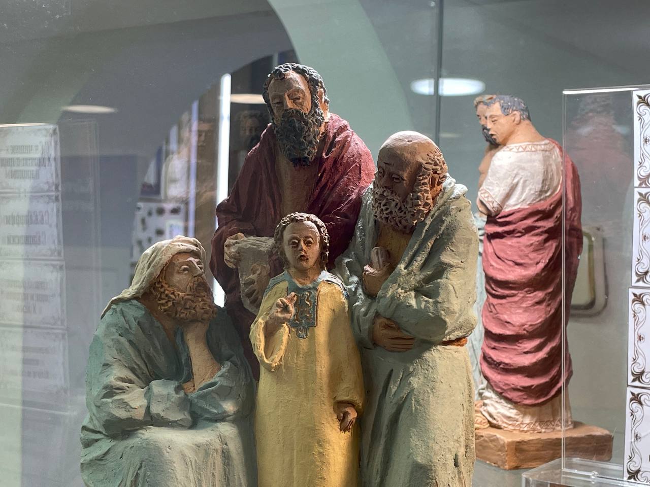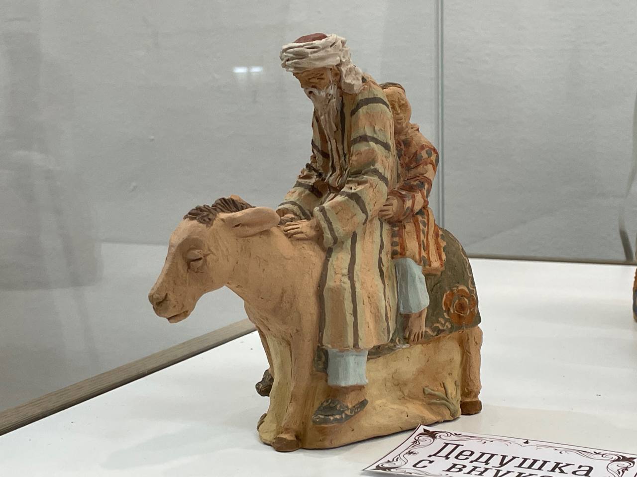 В экспозицию вошли порядка 50 глиняных фигур. Выставка объединила сразу несколько тем: евангельские сюжеты, исторические сцены, восточные мотивы, вдохновленные персидскими сказками, и скульптуры уличных музыкантов. Представлены здесь и традиционные свистульки.