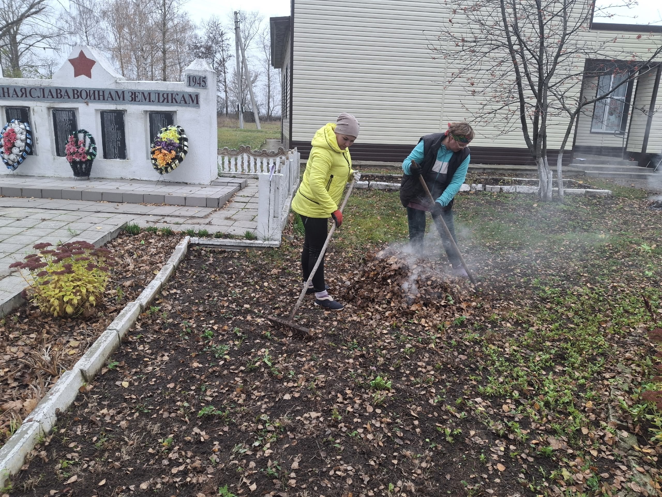 Работники культуры Плотавского сельского дома культуры провели важную работу по уборке территории около памятника военным однополчанам, павшим в годы Великой